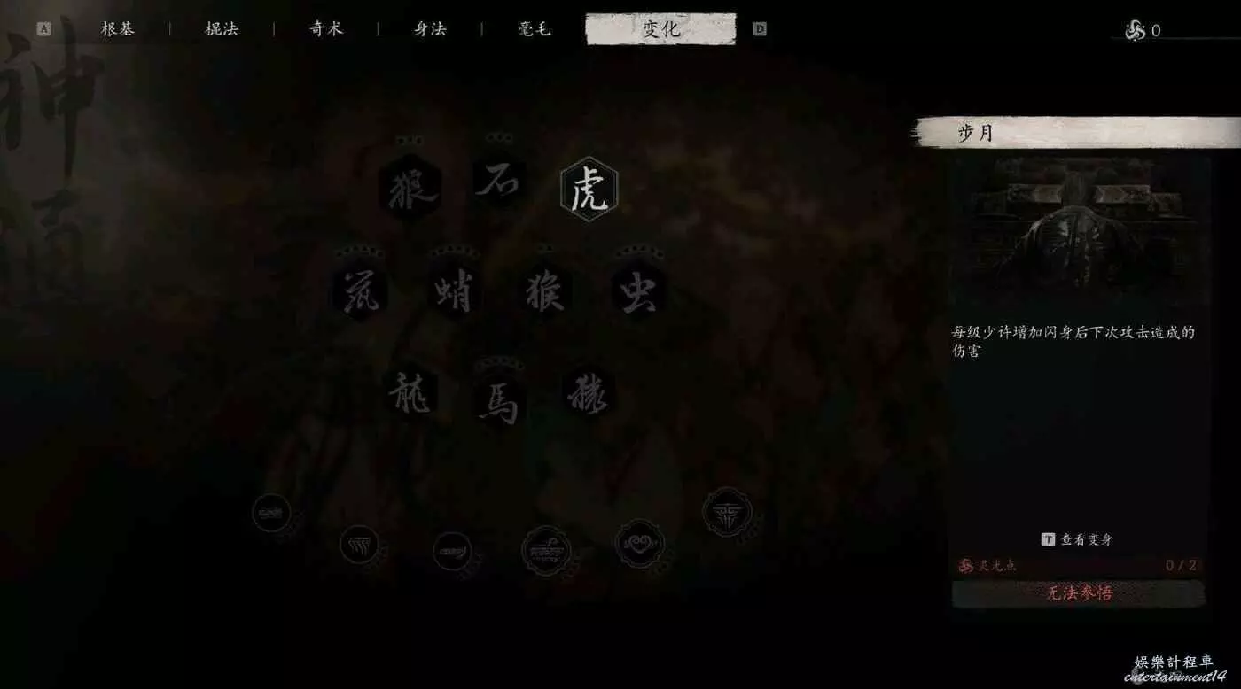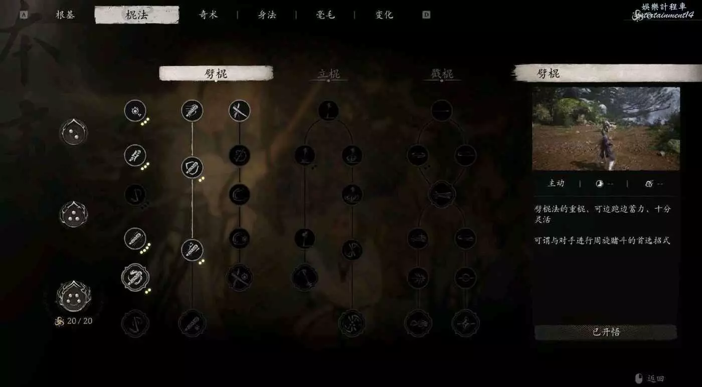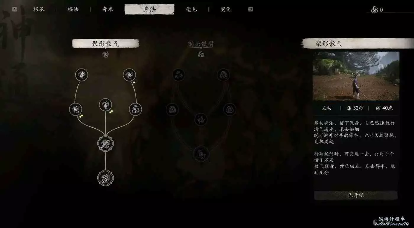 先是技能加點,根基系點出定息存神和棍花最終天賦,劈棍點出4段,定身可以點滿也可以不點滿(我藍量溢出了就點滿了),聚形散氣除了搗虛都點滿,分身不用點,變化點個寅虎減身法cd