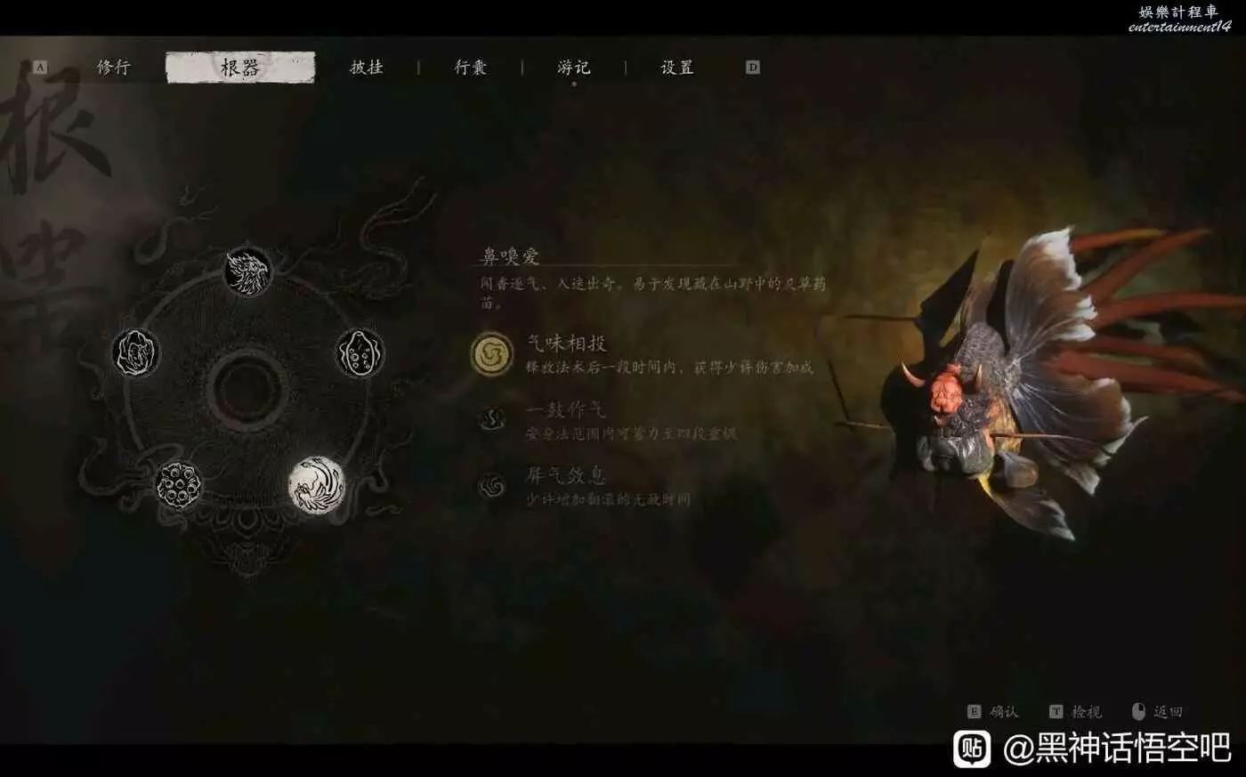 根器有三個是必須的,其他倆無所謂,眼看喜點減隱身cd,鼻嗅愛點用技能提供傷害加成,舌嘗思點泡酒物提供額外恢復