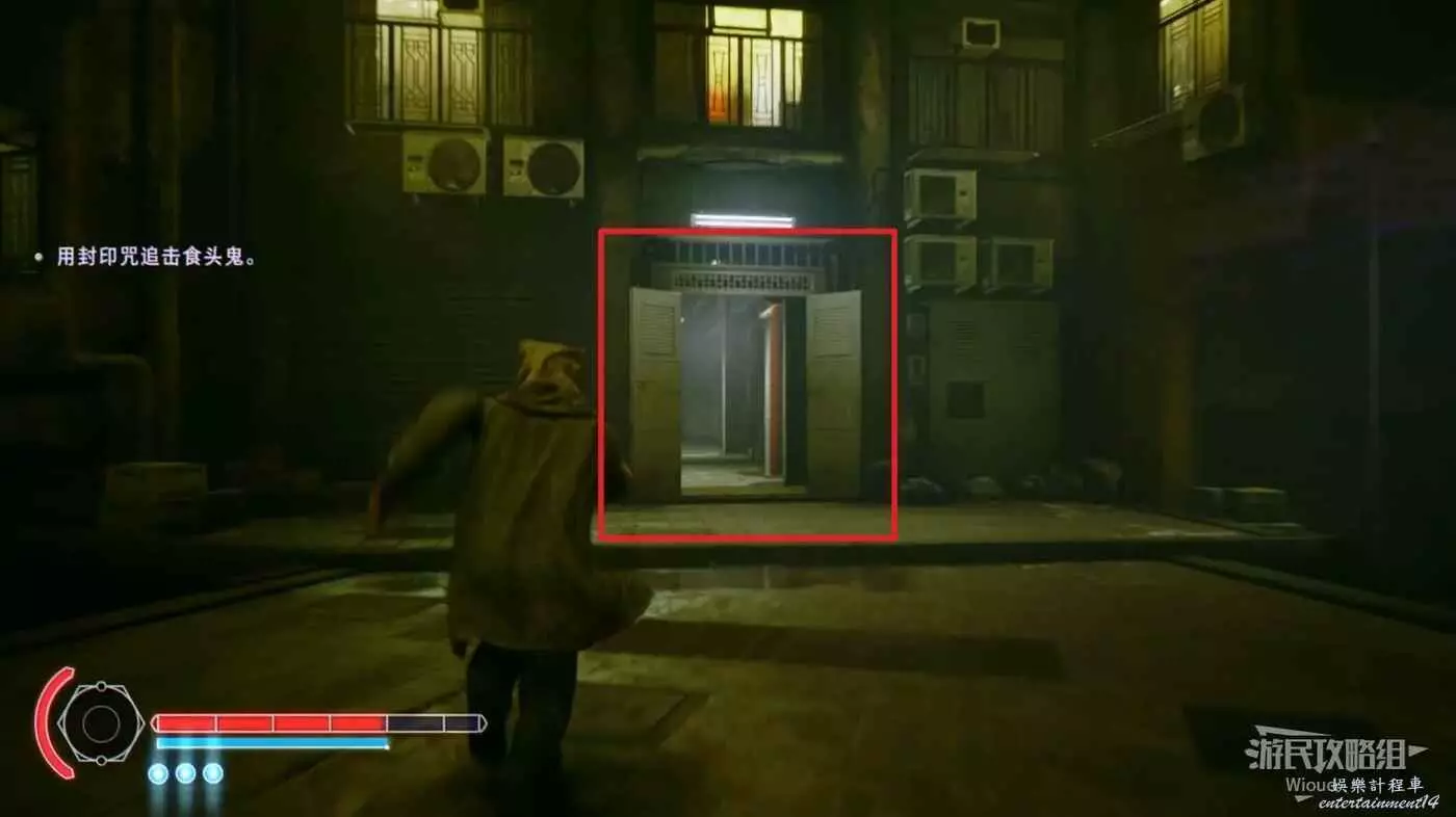 在右轉就能到達夜總會的位置停下,附身此處柵欄門另一側的NPC即可拿到一個記憶碎片。