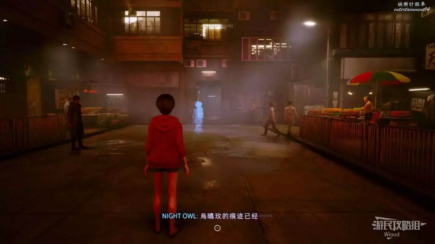 紅燈區後門左拐,附身柵欄另一側的NPC可以拾取一個記憶碎片。