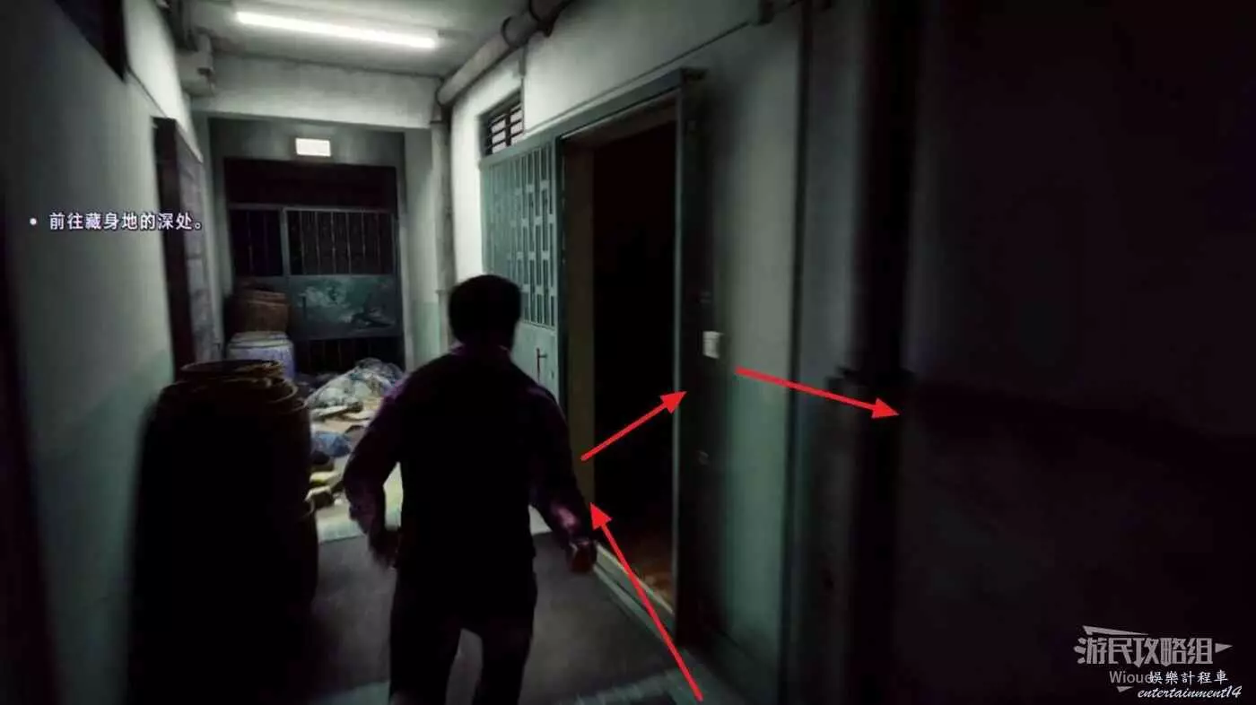 趁巡邏的人背對我們直接進入祈禱室,神秘老太太就在祈禱室裡,在祈禱室等待巡邏的人移動到另一側,然後出門往左走。