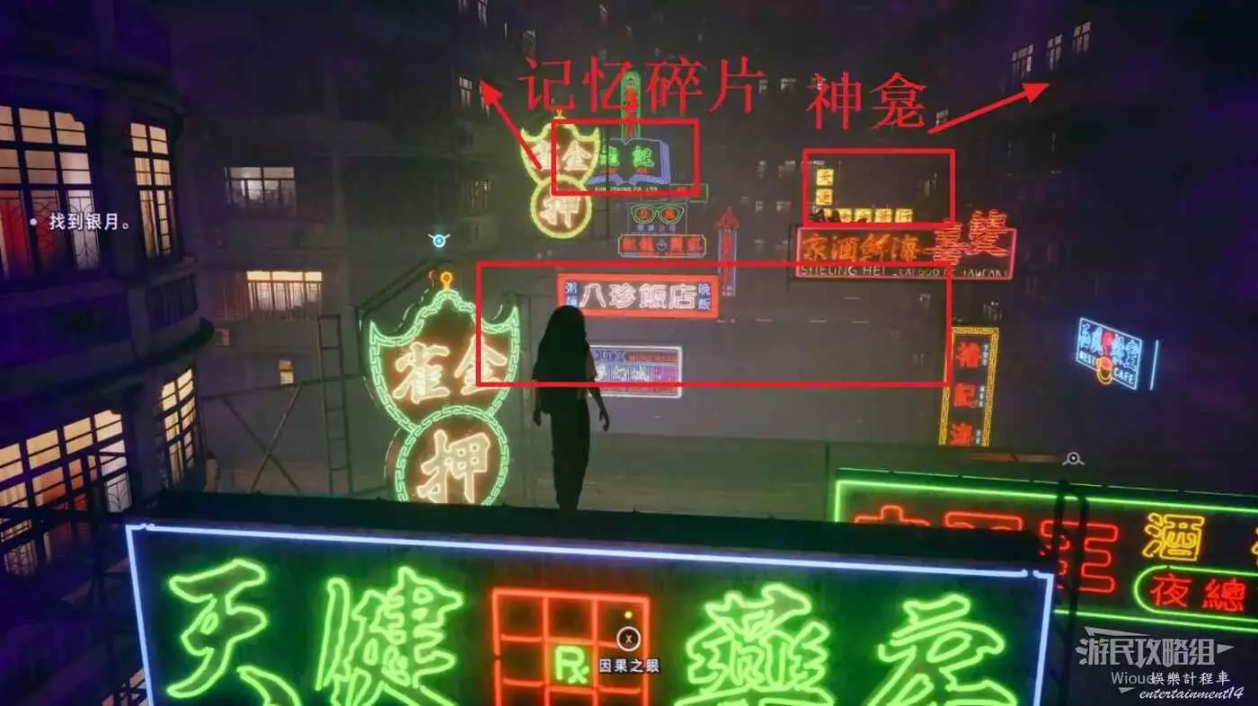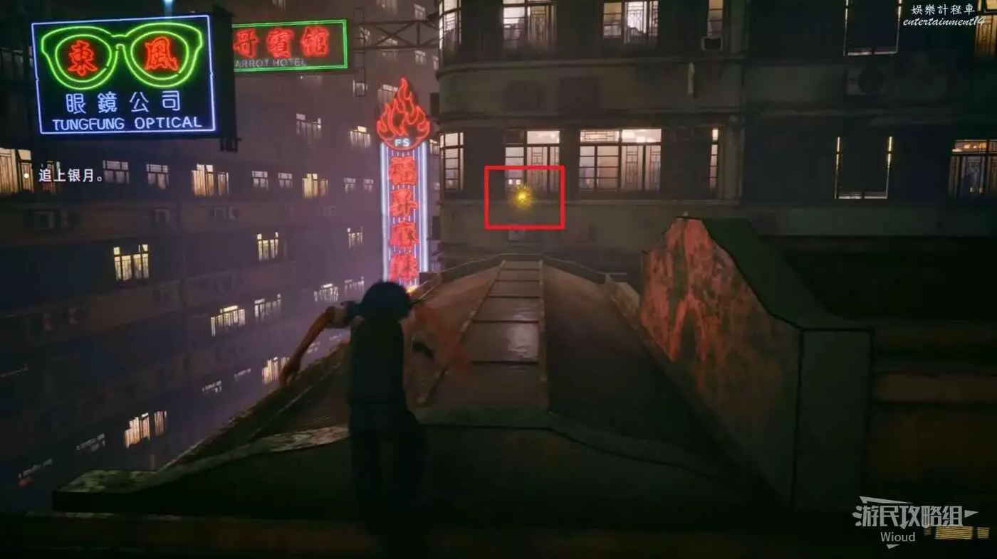 龍記燈牌左邊的樓頂可以拿一個記憶碎片(後面劇情必過可以先放著),右邊黃色的天運……燈牌右邊樓頂是一開始看到的神龕(需要單獨過去拿)。