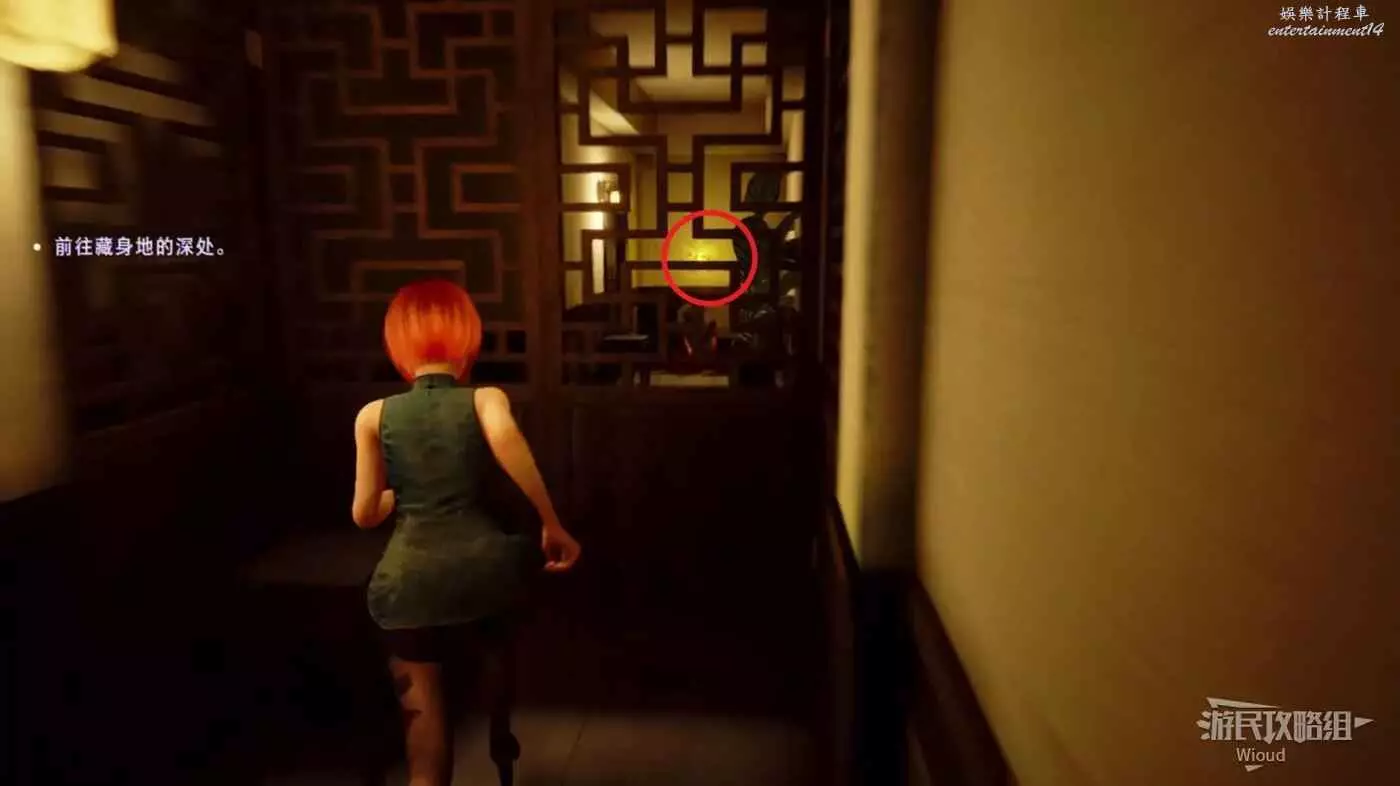 完事回到電梯處往右走來到麻將館,這裡觸發一次戰鬥,從陽台離開走老路到老闆的房間大門處,往右邊的屏風處走可以看到一個記憶碎片,無法直接過去,通過附身對面的NPC拿。