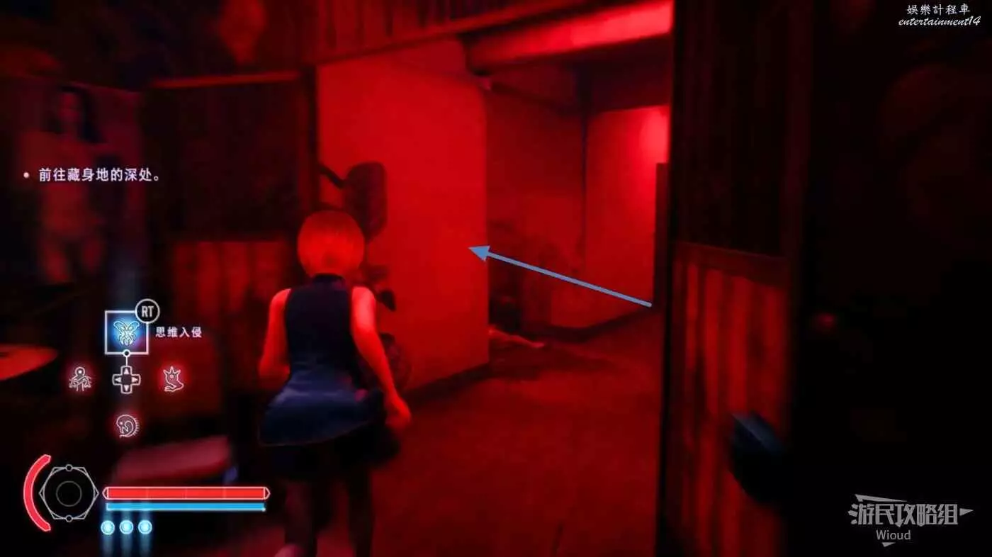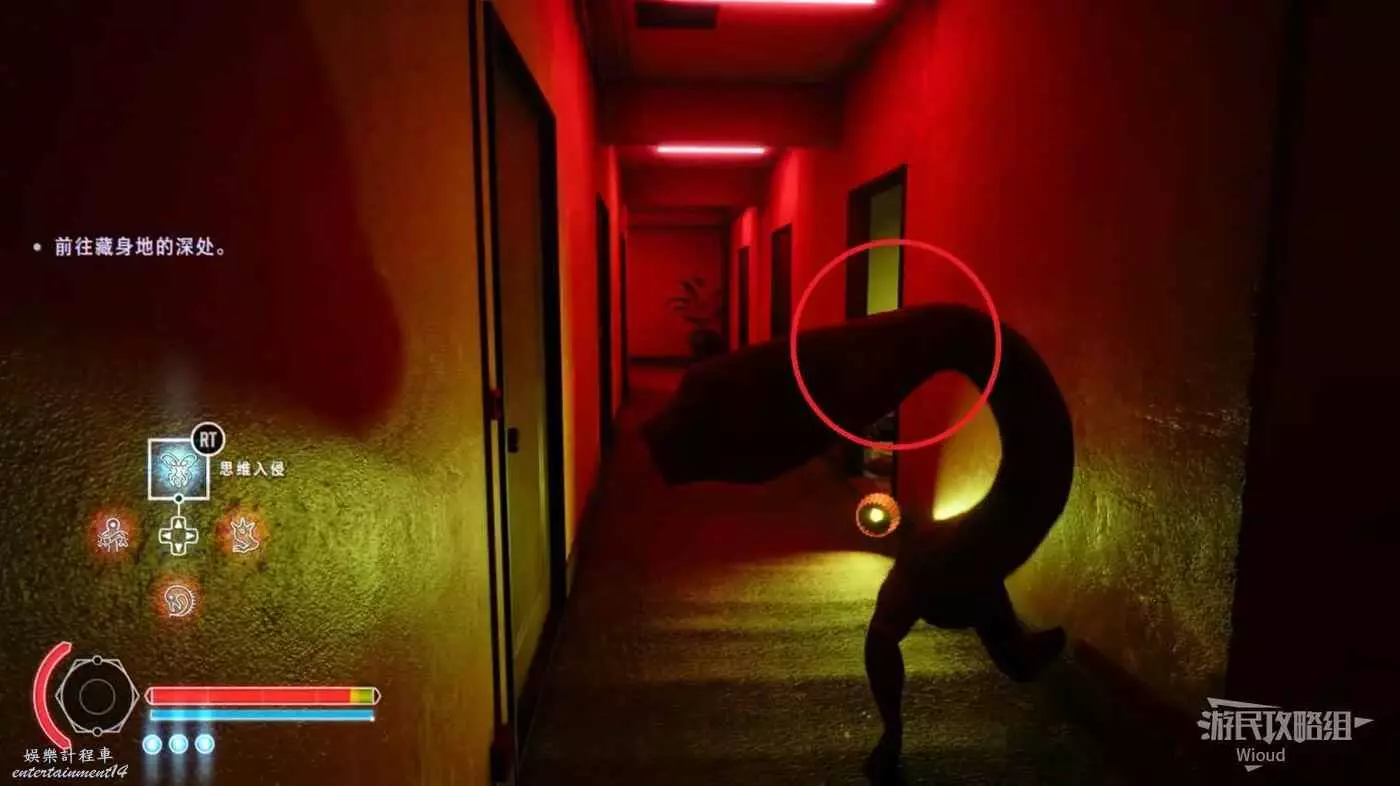 開場通過右下角樓梯走到建築門口,發現這回所有的NPC都被吞噬,直接從正門走到之前的紅色房間。