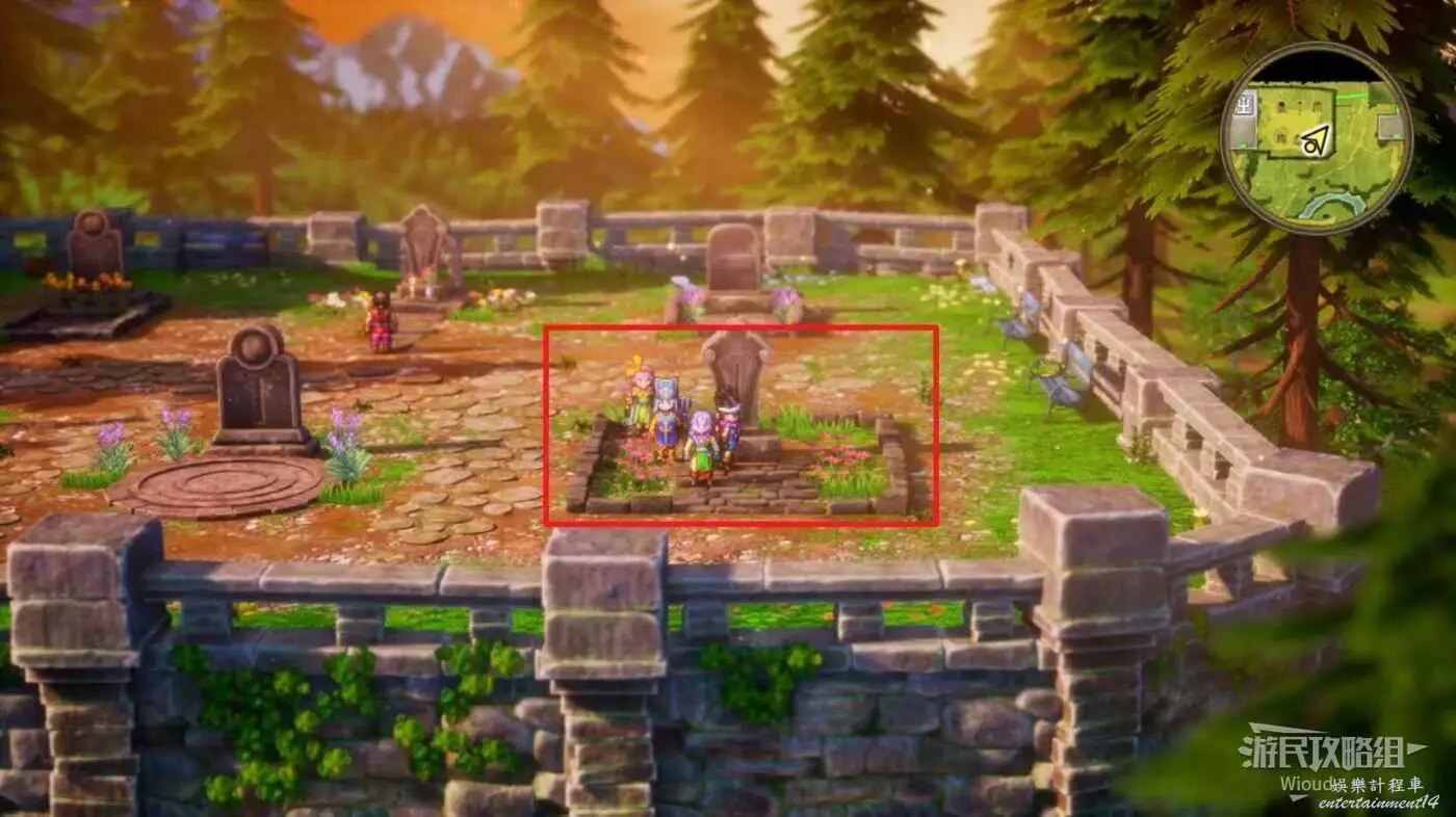 移動到標註2處,先進入教堂再從房間右側大門來到墓地,右側靠下位置的墓碑處可以獲得一個小徽章。