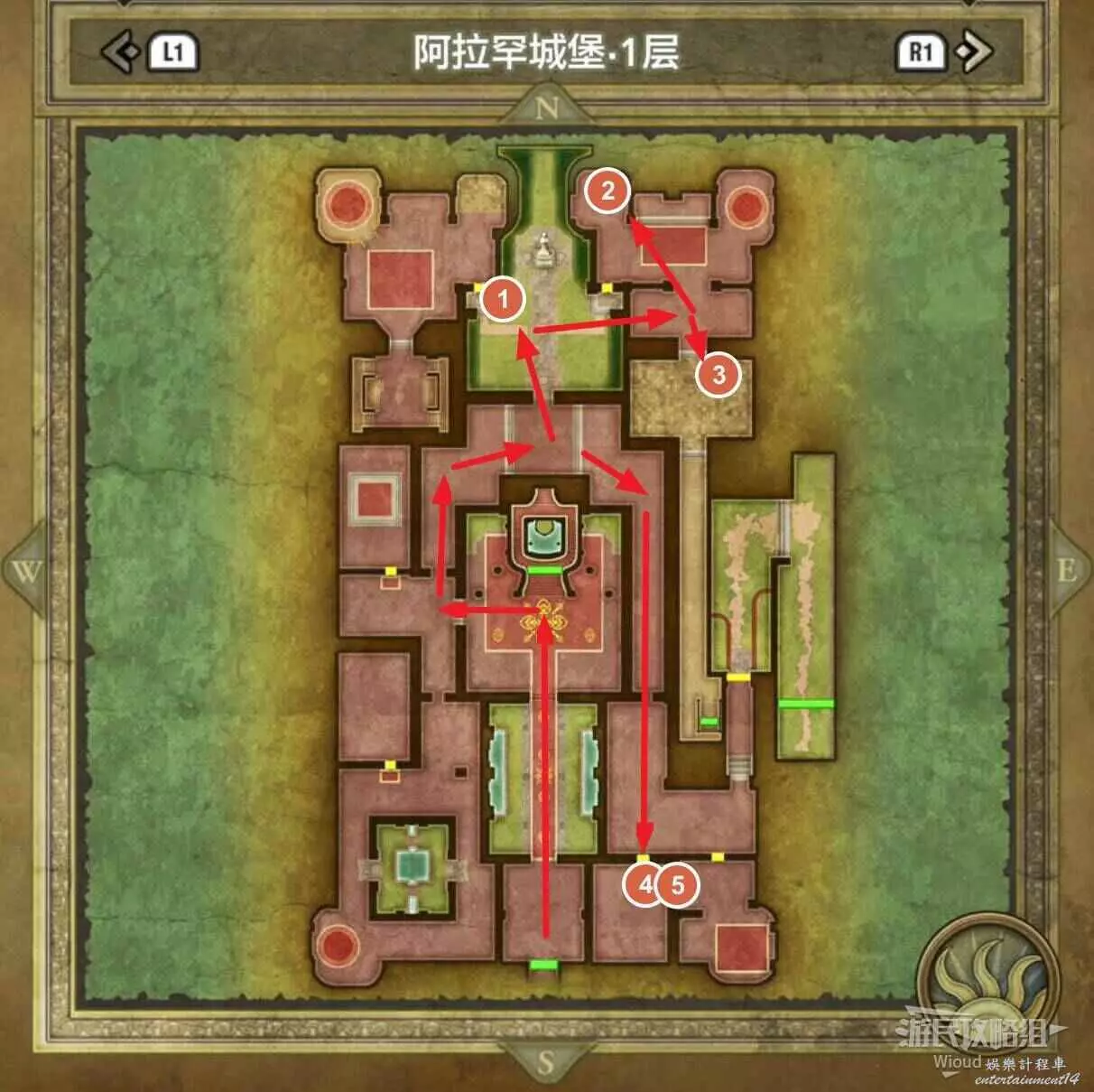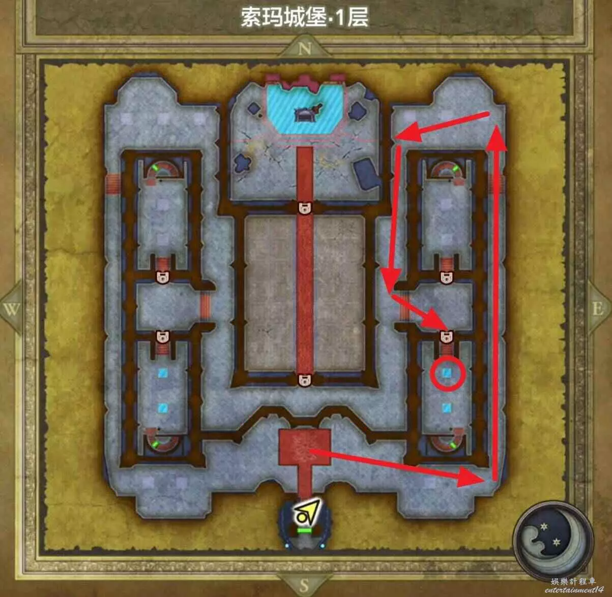 位於索瑪城堡,先跟著箭頭往一層右下角的房間走。