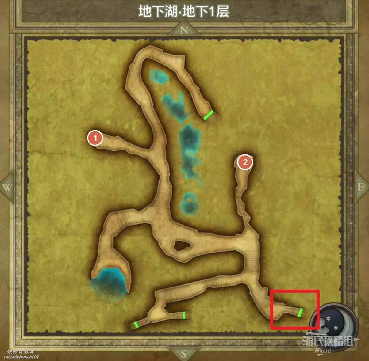 位於地下湖地下一層,標識2的寶箱可以開出一個小徽章。
