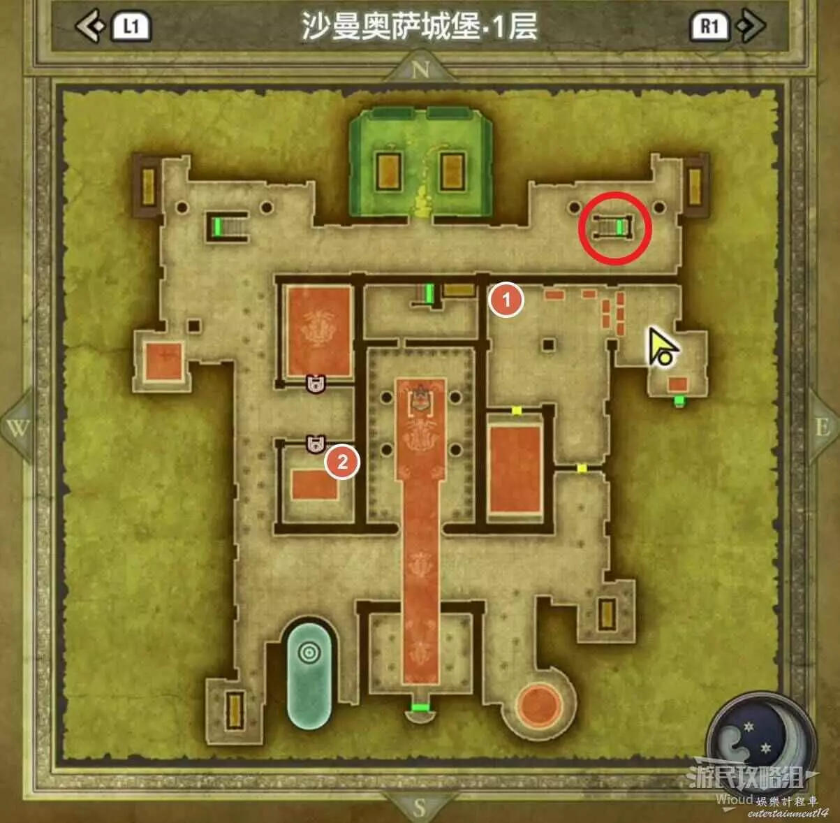位於沙曼奧薩城堡,標識1的位置可以拿到一個小徽章。