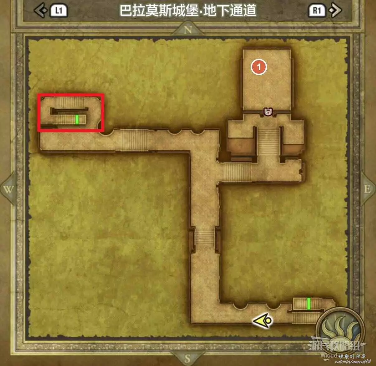 巴拉莫斯城堡地下通道,前往標識1的位置調查地面可以獲得一個小徽章。