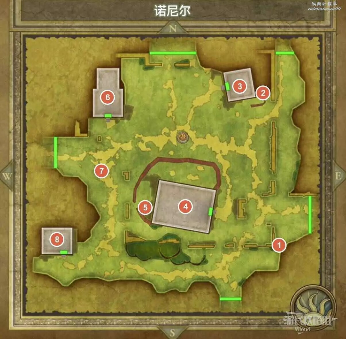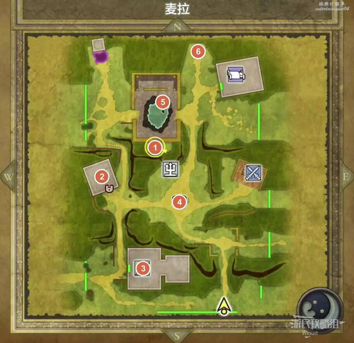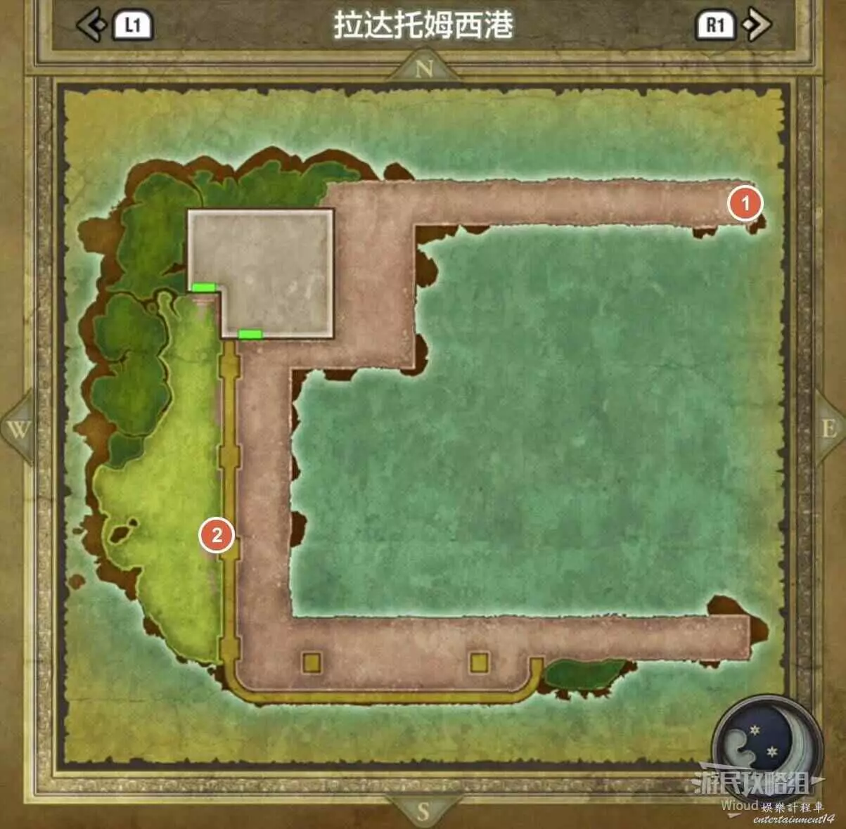 位於格陵拉德野外,標識1處的寶箱可以拿到一個小徽章。