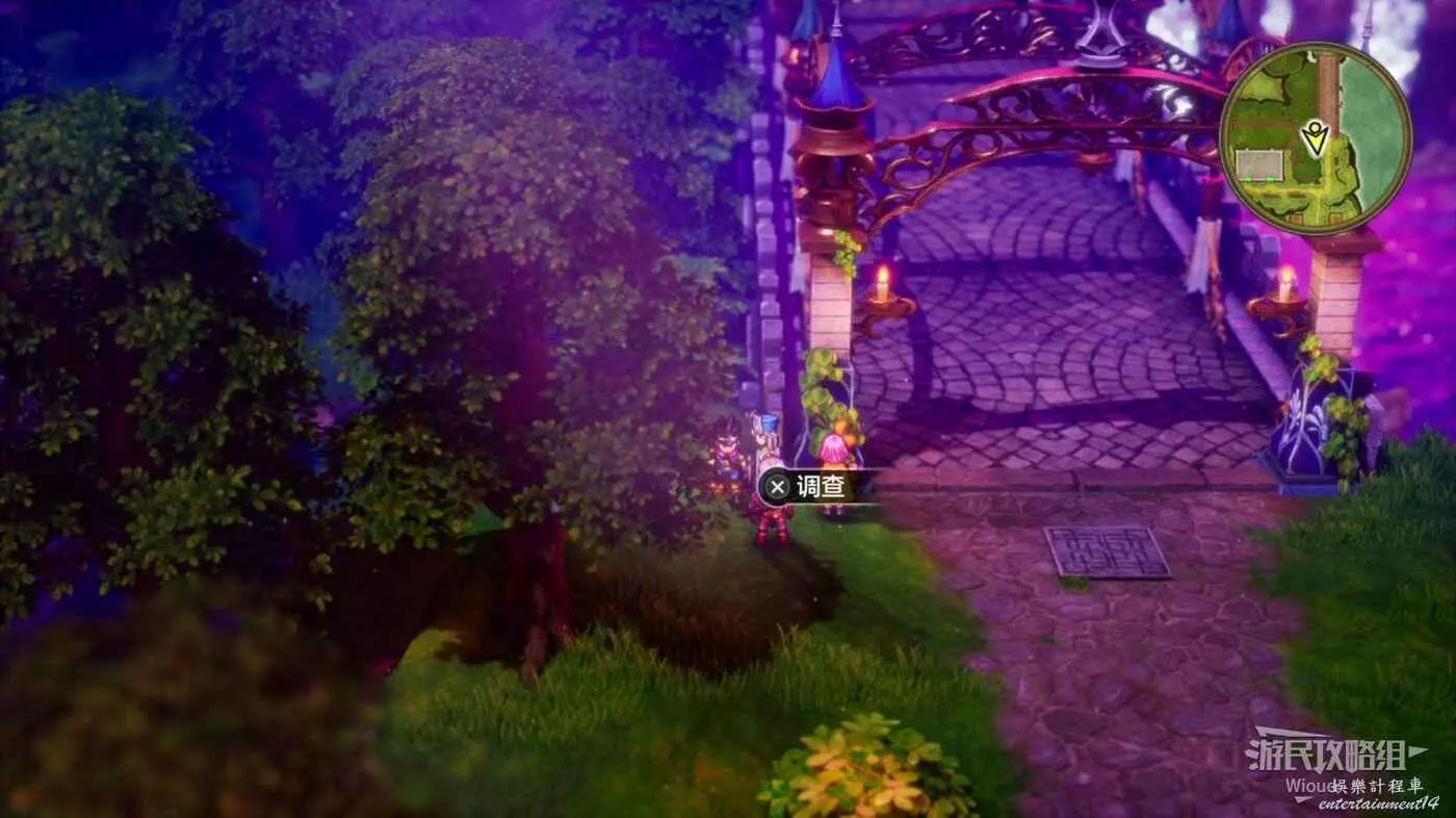位於妖精的隱居之鄉,標識2是一個調查點,站位如下圖所示,選擇調查可以獲得一個小徽章。