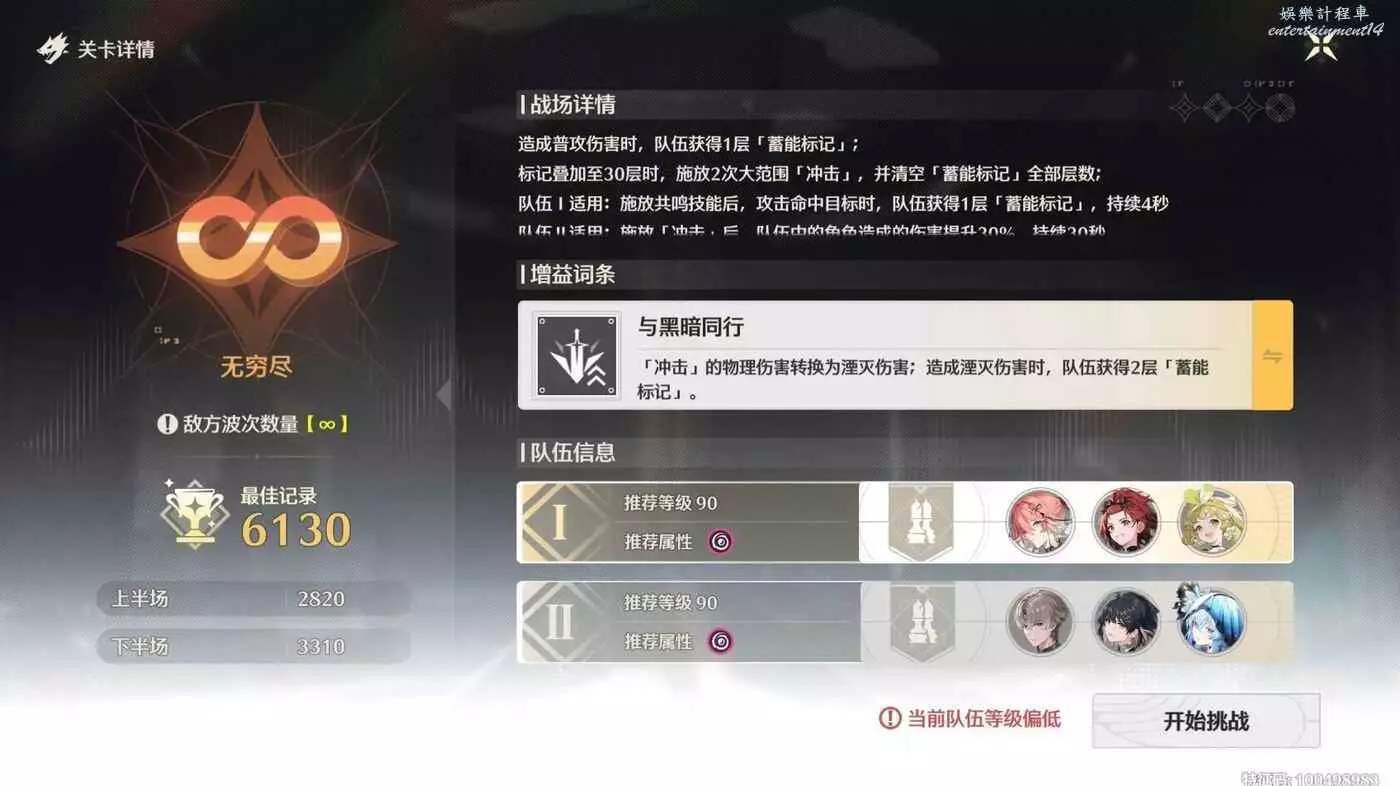 2.上半滿分1500左右,下半滿分1000左右,所以如果你只練了一個暗c,並且上半不能打完,那不用想暗c只能走上半,個人實測正常練度暗散維上半可以輕鬆打滿(暗主甚至帶四星無雙爆武器,散華三星武器)。