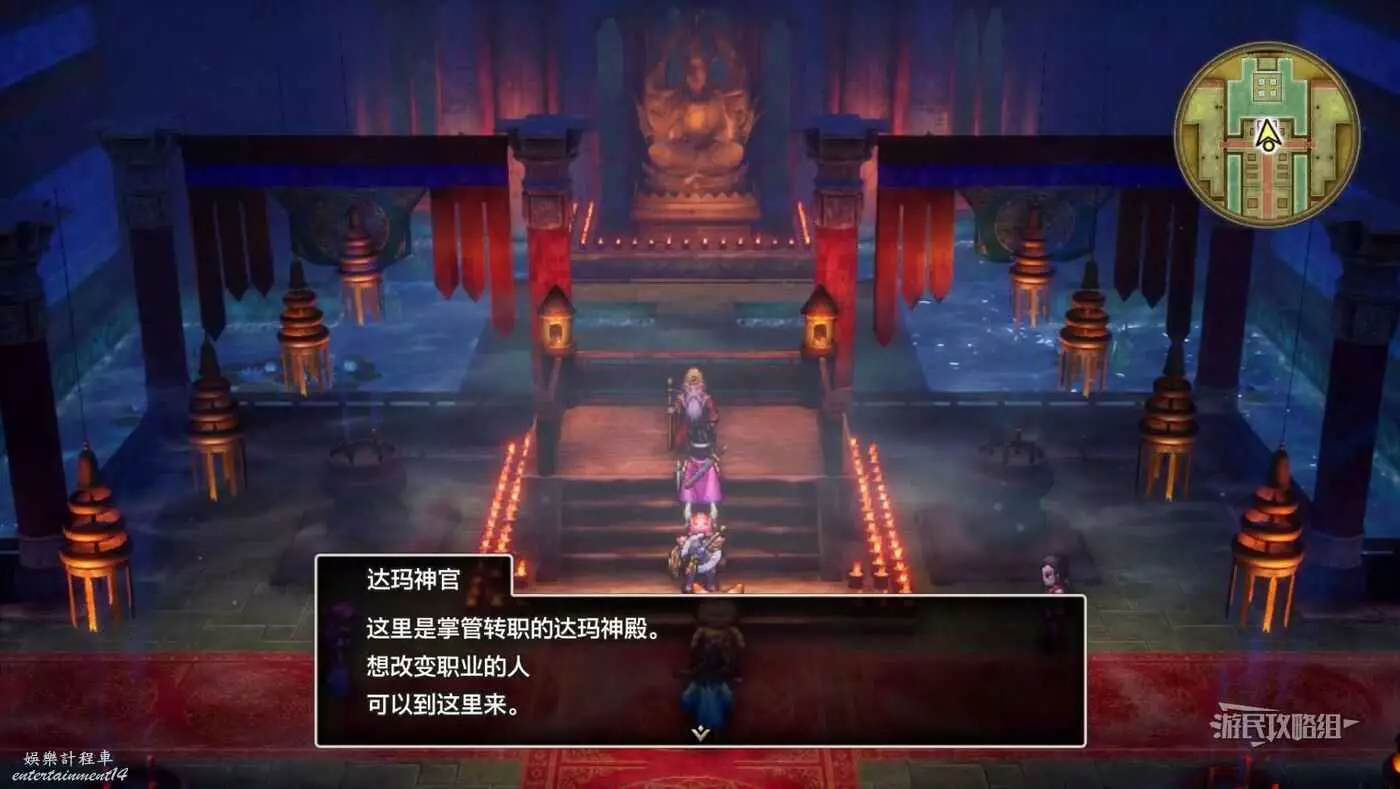 前往達瑪神殿即可轉職,達瑪神殿並非主線劇情必經之路,只要推進主線至大地圖能到達達瑪神殿時即可前往。轉職需要該角色等級達到Lv20以上,如果沒有達到20級是不能轉職的。另外,勇者也是不能轉職的,但勇者是唯一一個能夠習得攻擊&恢復&復活咒文,且攻守十分平衡的的職業。