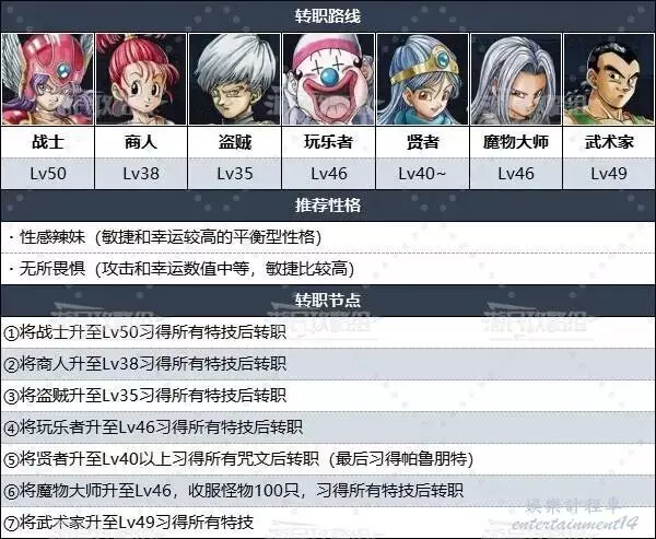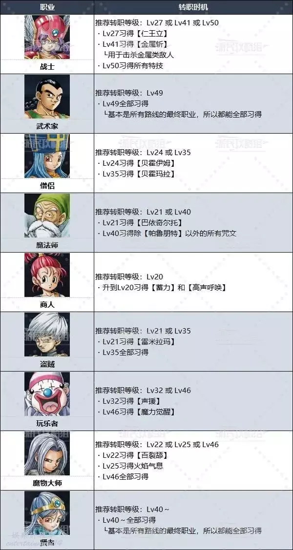 什麼時候推薦轉職呢?由於轉職後會繼承之前職業已經習得的咒文和特技,所以按照上文選擇習得比較重要的特技後再考慮轉職,或者全部習得之後再考慮轉職吧。各職業推薦轉職的等級如下。
