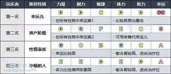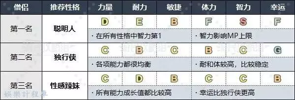 玩樂者推薦選擇所有性格中幸運最高的“幸運兒”,同時其他能力也相對比較均衡。