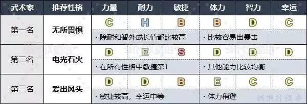 武術家可以作為高速物攻手,推薦選擇能夠兼具攻擊力和敏捷的性格。除此之外武術家比較容易打出暴擊,幸運值比較高的話可以更容易打出暴擊,也可以結合這一點來挑選性格。