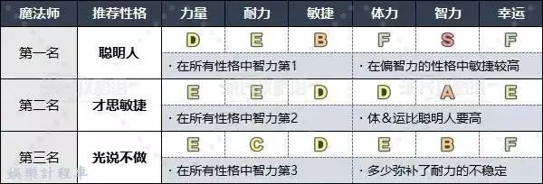 魔法師首推敏捷成長比較高的聰明人,不過不介意耐力的話也可以選擇才思敏捷和光說不做。儘量選擇能夠提升MP上限和攻擊咒文的威力的智力型性格。