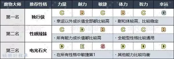 魔物大師有很多能打出固定傷害的特技,所以不用過多考慮力量和智力較高的性格,推薦優先考慮敏捷值較高的性格,或者體力較高的“獨行俠”和“性感辣妹”。
