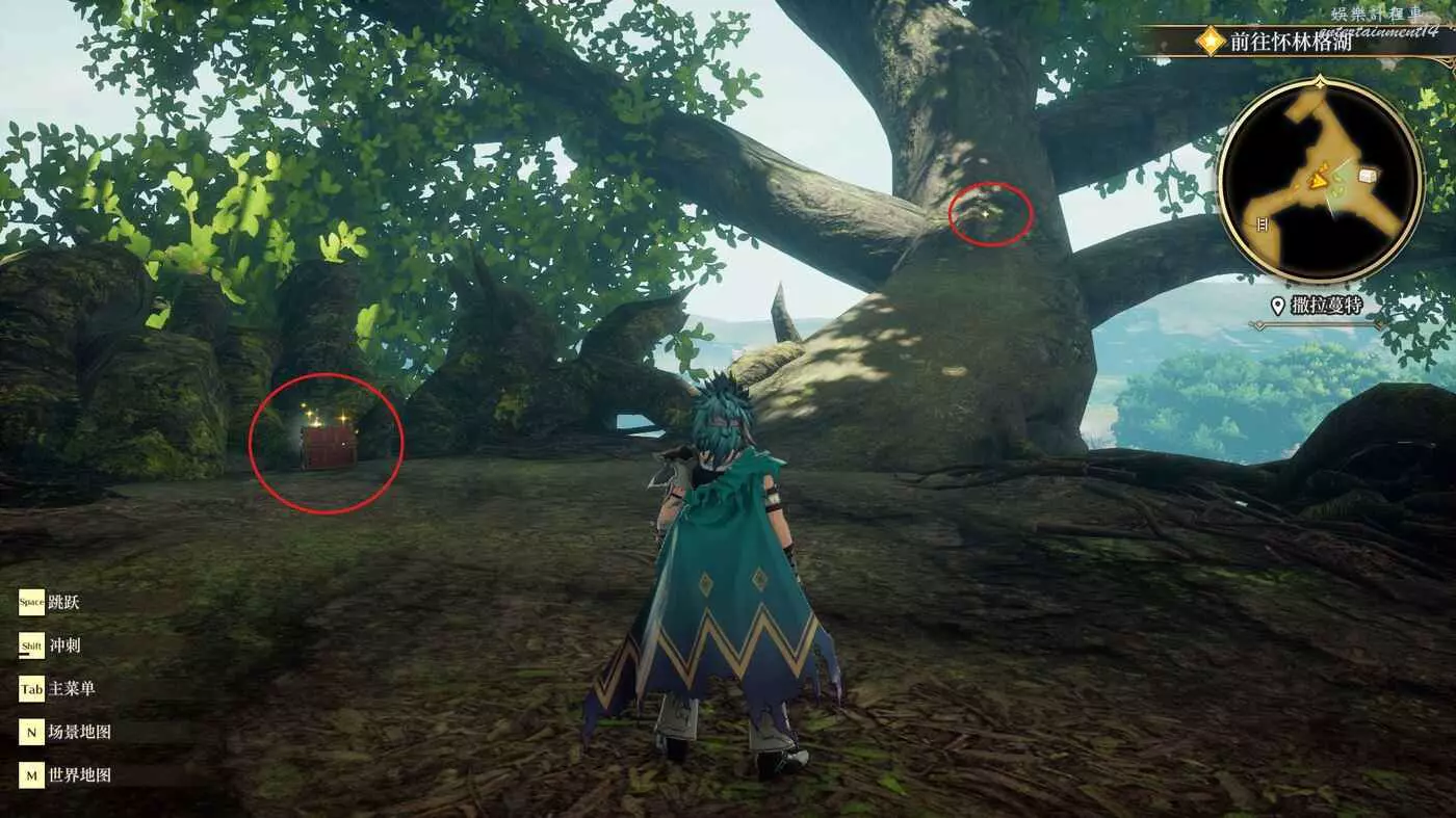 接下來我們原路返回,直接從樹上跳下去,樹下還有一個寶箱,打開獲得大地精氣x3。