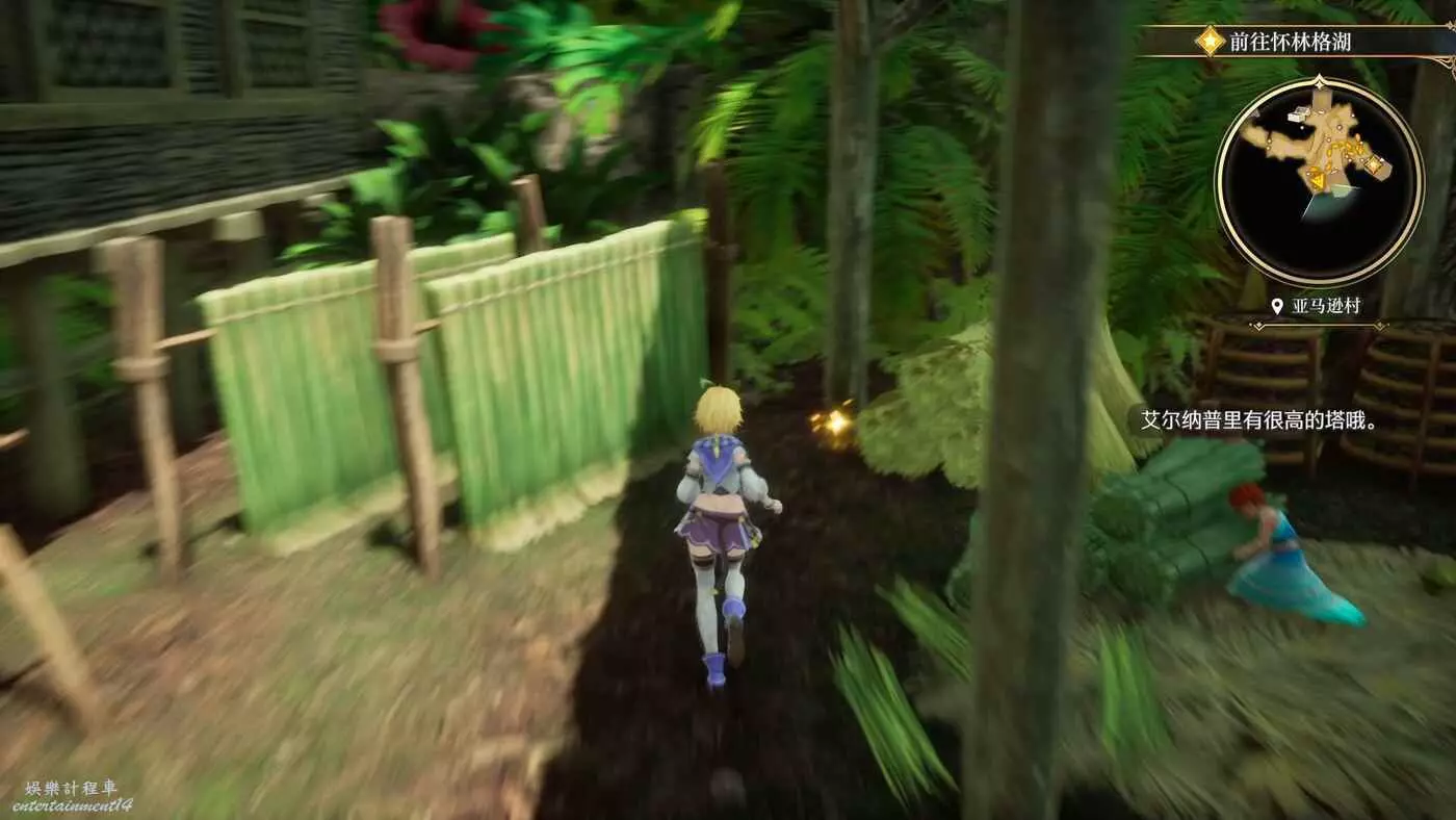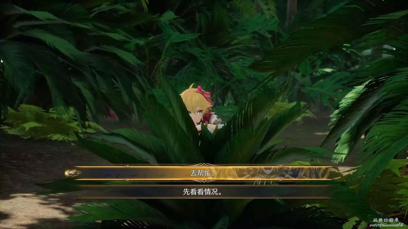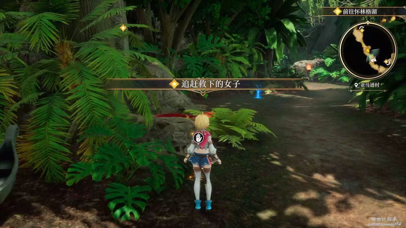 從這個位置進門以後,我們會來到新的地圖亞馬遜村,走前面幾步路會發現前面有一個女角色被怪物給包圍了,此時我們選擇第一個選項可以去説明她。