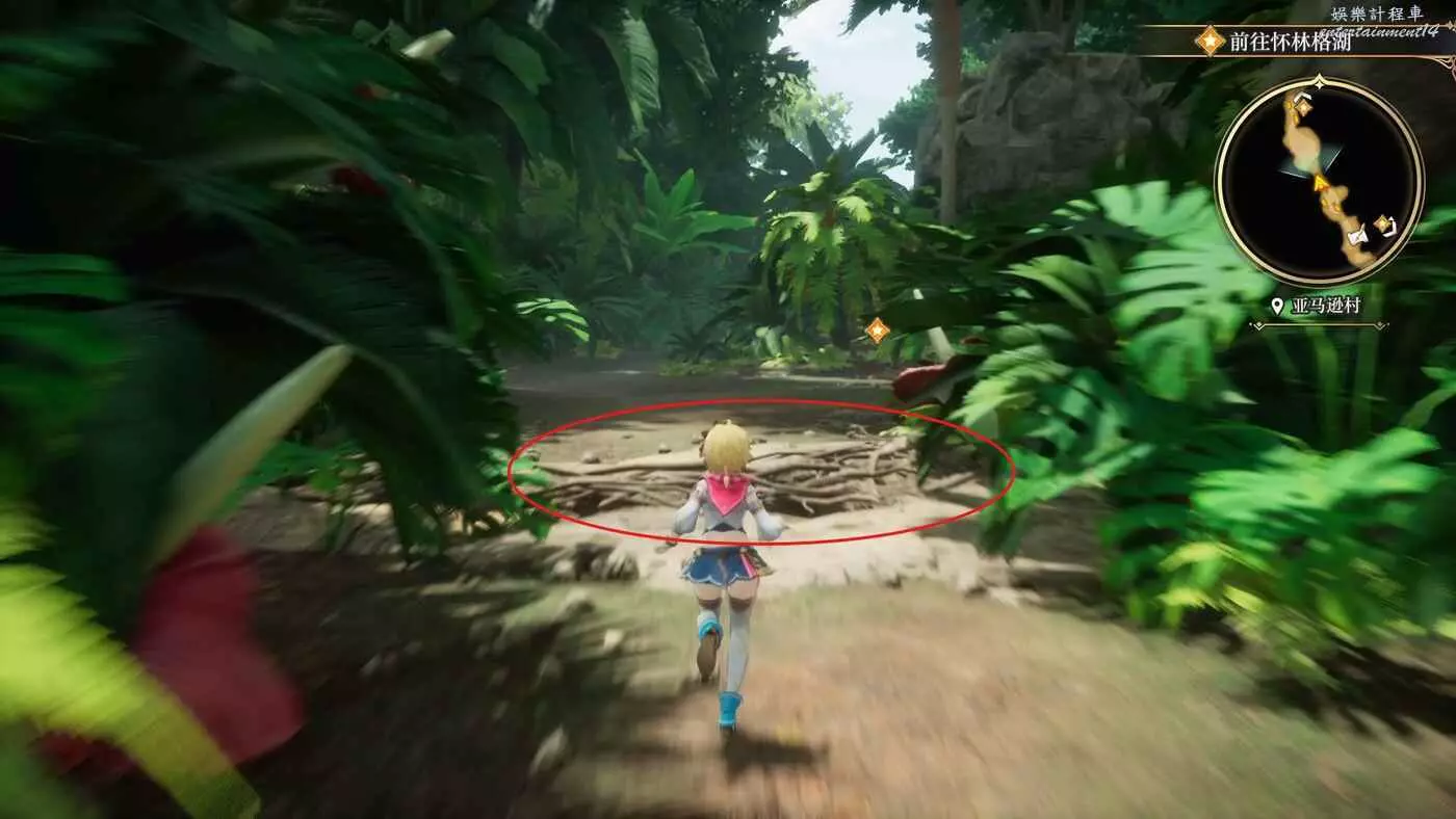 拿完這個純鐵石準備傳送回去到亞馬遜村,這一次我們不要跳下去,直接跳過去,走一段距離可以來到亞馬遜村。