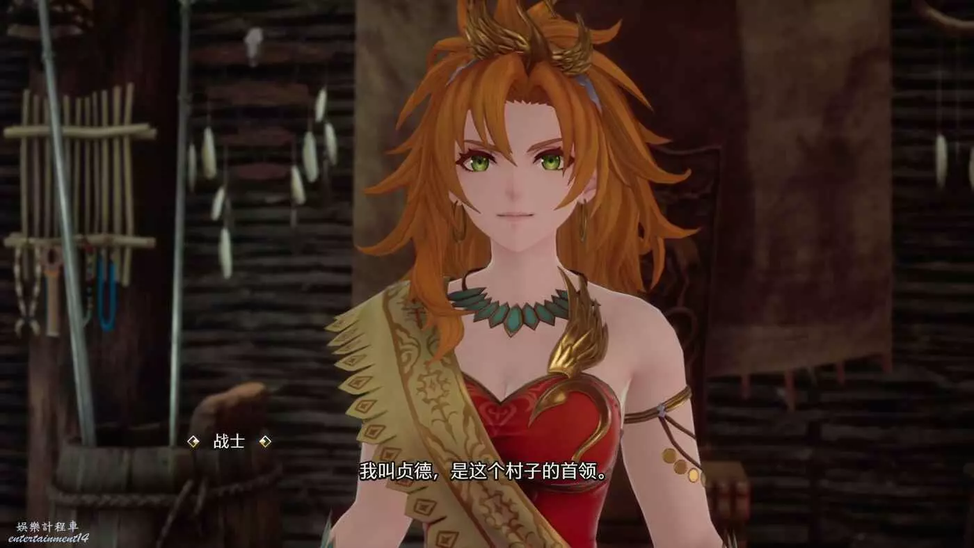接著我們往目標點房子裡走,進去以後這個女戰士會向我們自我介紹,她的名字是貞德,是這個村子的首領。