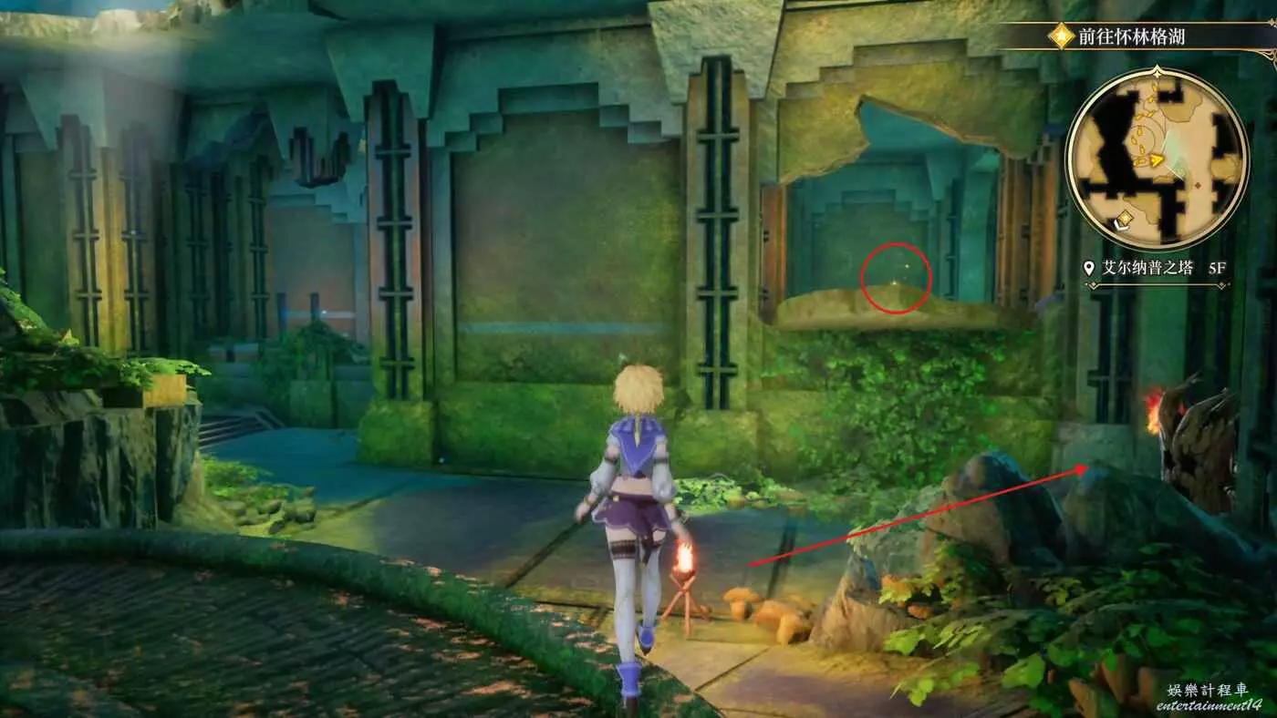 接著進門來到塔的第五層,紅箭頭的小凹槽裡可以拿到道具白珀。