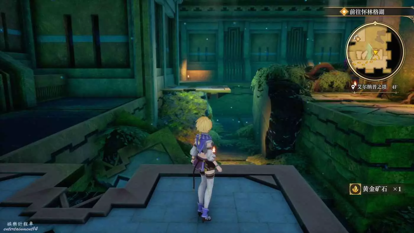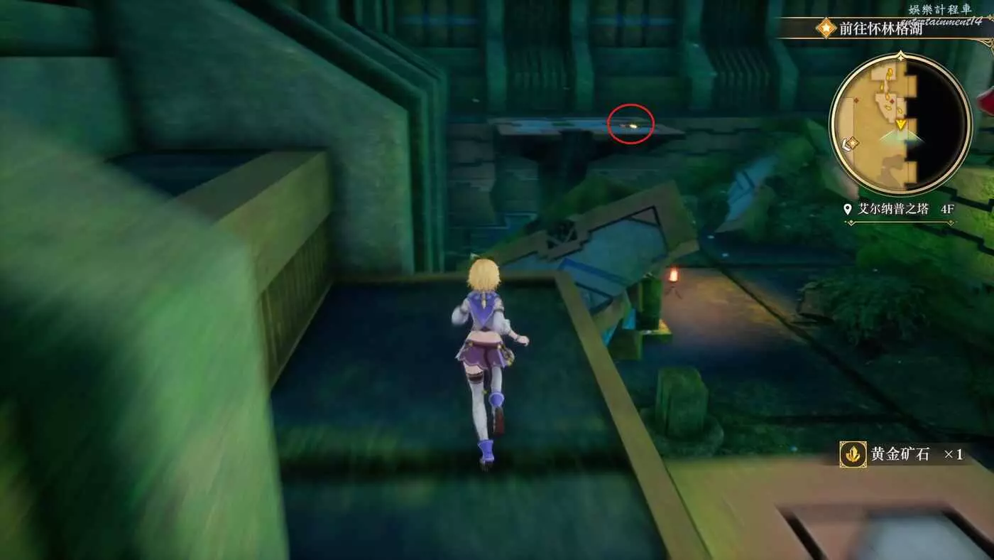 接著往目標點走,來到這個位置獲得道具黃金礦石x1。拿完這個五層就收集完了,我們準備去四層。