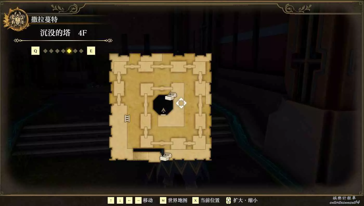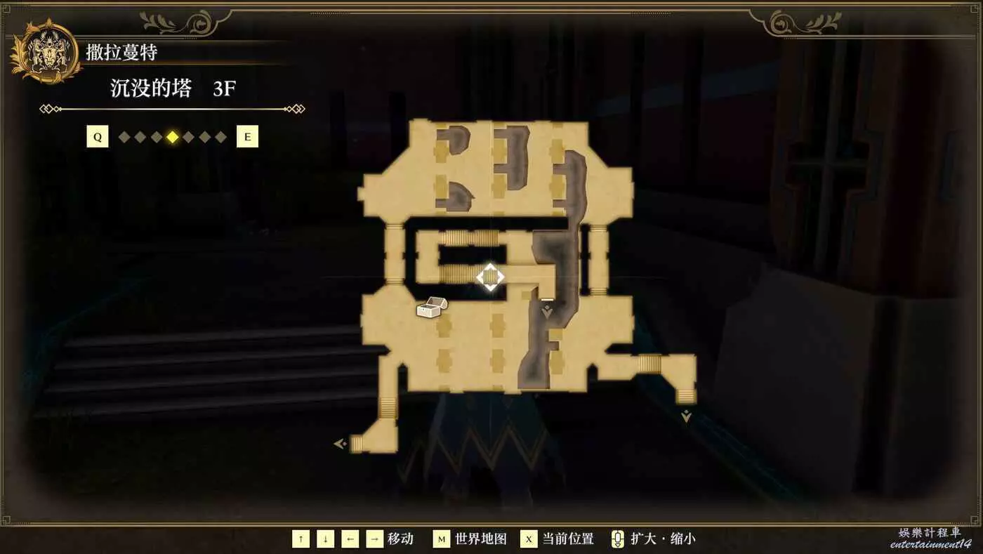 如果不想迷路的話直接跟著目標點就好,寶箱可以看地圖找,來到三層的正面有一個記憶可以拿。