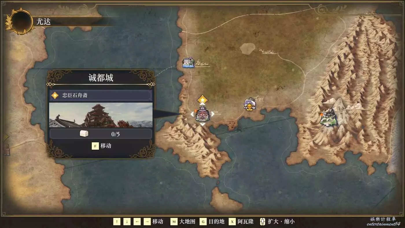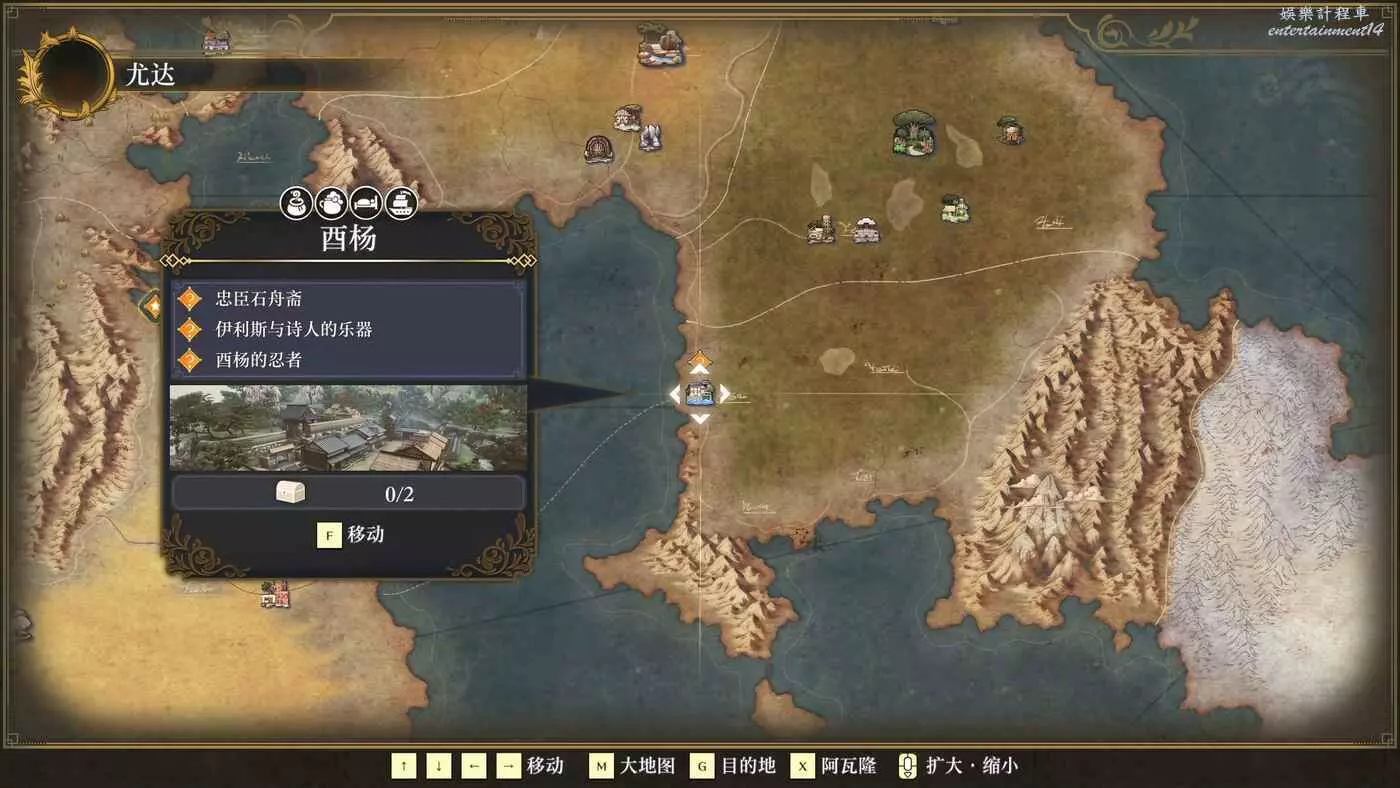 接下來我們去把一些比較重要的任務清一下,有些任務是打七英雄要用到的任務,可以先傳送到酉楊來做一下忠臣石州齋,酉楊可以從撒拉蔓特過來,因為攻略的時間有點趕,往後只會標記處寶箱和老師所在的位置,希望大家諒解。