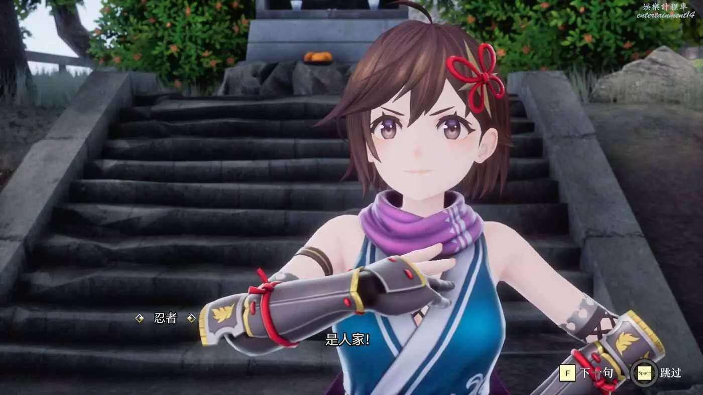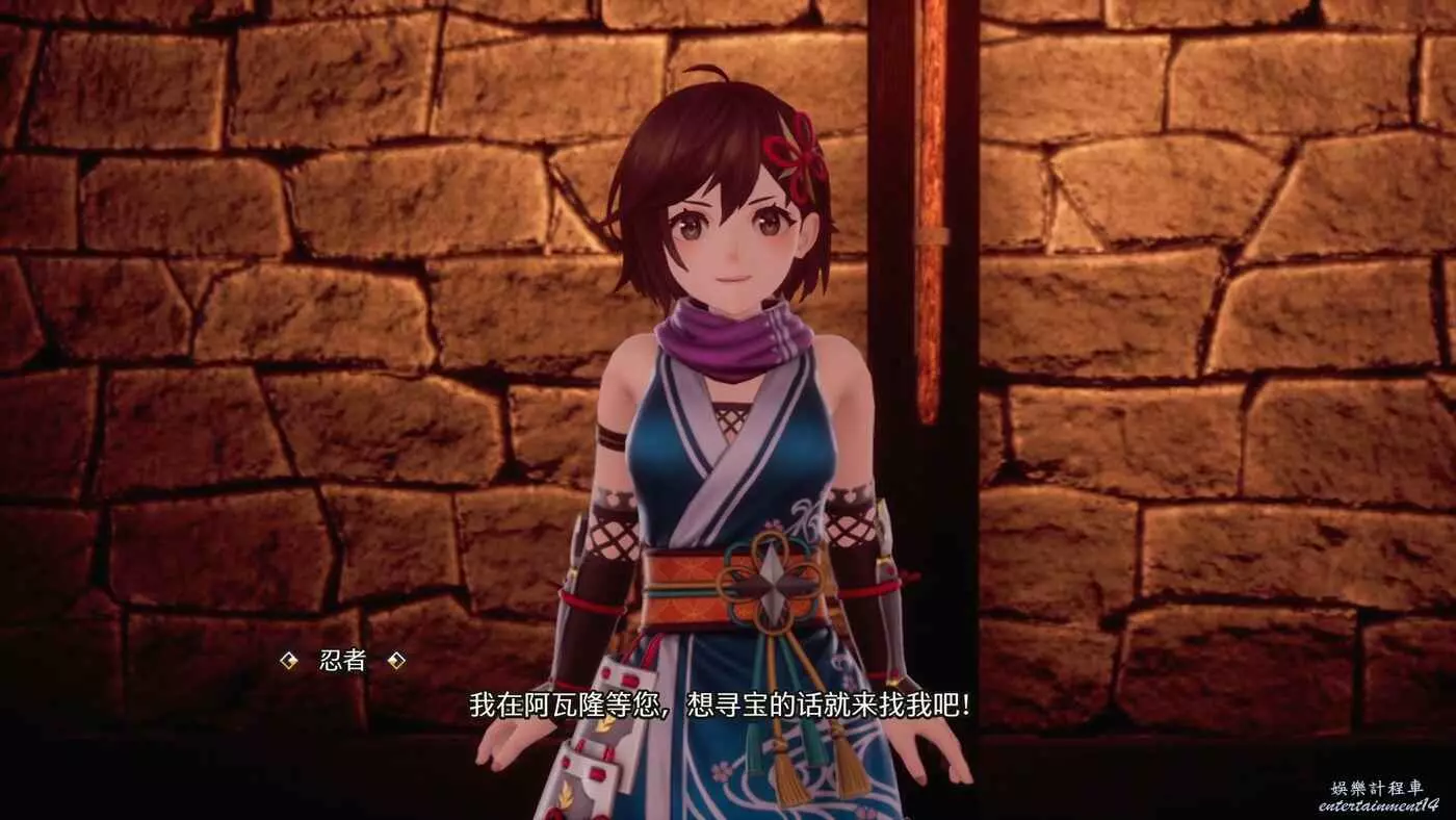 我們來到這個神龕附近,會遇到一個忍者少女,她和我們對話挑釁說寶箱都是她的以後就跑了,我們到時候做任務的時候會碰到她。