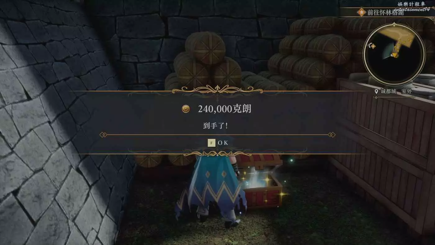 往裡面走,地圖這個角落有一個寶箱,打開獲得24W克朗。