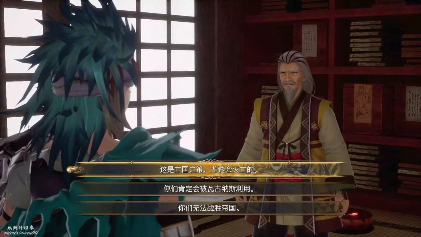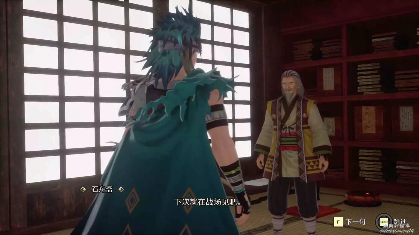 和地圖上的三人對話後得知,瓦古納斯現在攻擊這個鎮子,他們的阿斗王也指望不住,希望都在石舟齋身上,我們需要進石舟齋的宅邸找他。