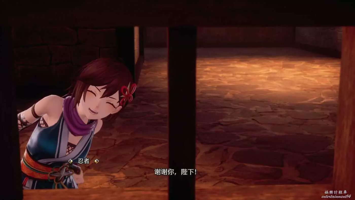 進入牢房,就看到我們剛才碰見的忍者少女,此時她好像被關在門裡面,她也讓我們什麼都不要問,能否去踩下左邊的機關。