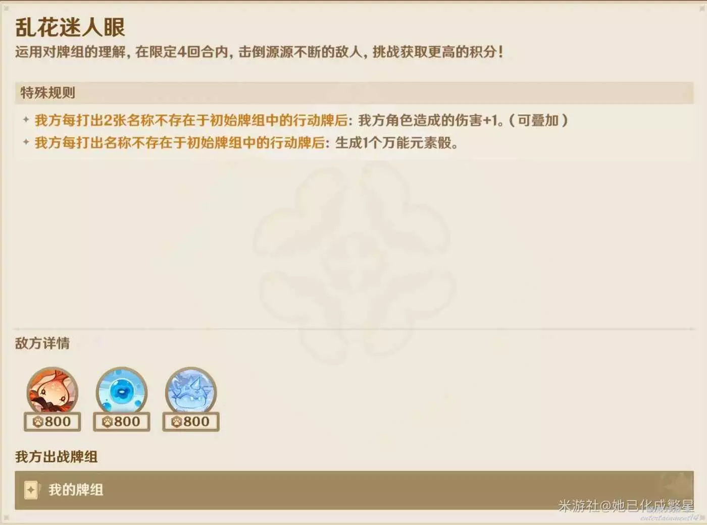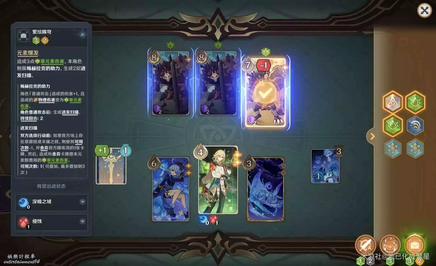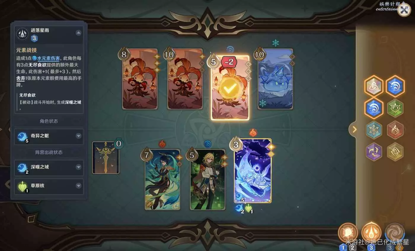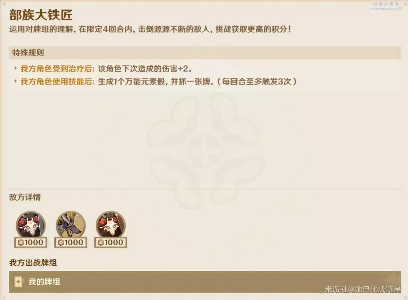 隨著《原神》5.2版本更新,常駐玩法《七聖召喚》的鑄境研煉部分也迎來了全新的挑戰關卡,完成全部的關卡挑戰之後就能獲得8000的幸運牌幣,讓我們有更加豐厚的身家去購買商店中的心儀商品。為了讓挑戰攻略步驟更加簡潔明瞭,我們在接下來的內容中一律使用無手牌的通關辦法,小夥伴們可以在這基礎之上新增增益卡牌,從而更快地完成挑戰。