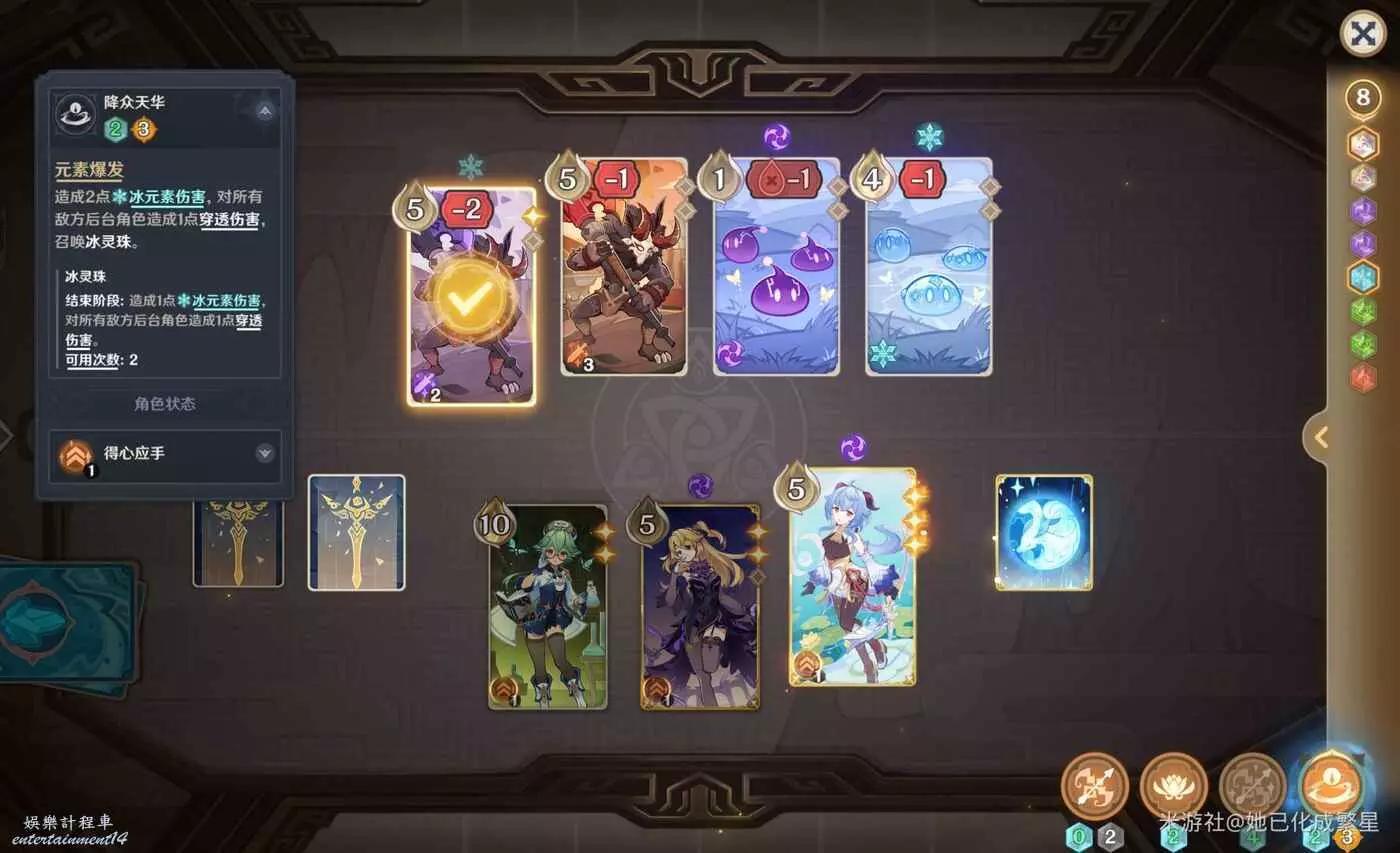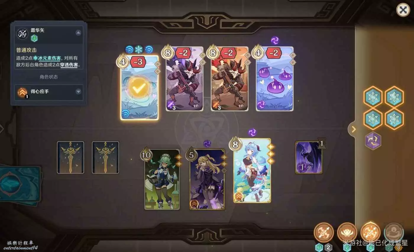 2.為了讓大家減少凹度,筆者已經盡可能降低對元素骰子的需求,但是仍建議大家帶上群玉閣、一擲乾坤、最好的夥伴等卡牌來增加骰子容錯。
