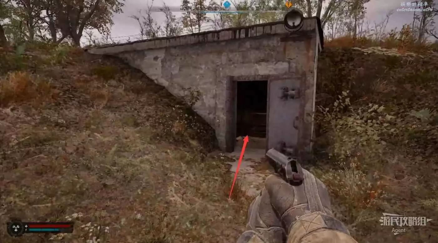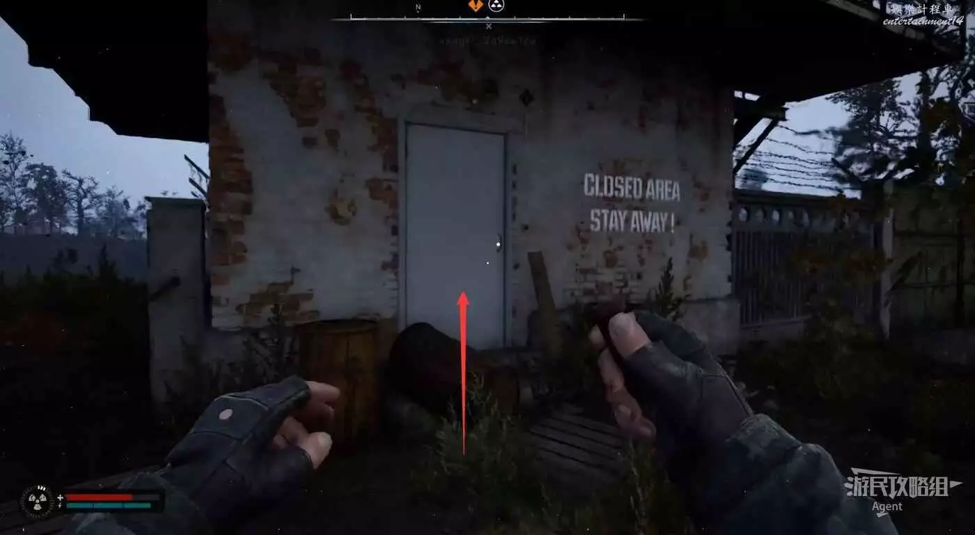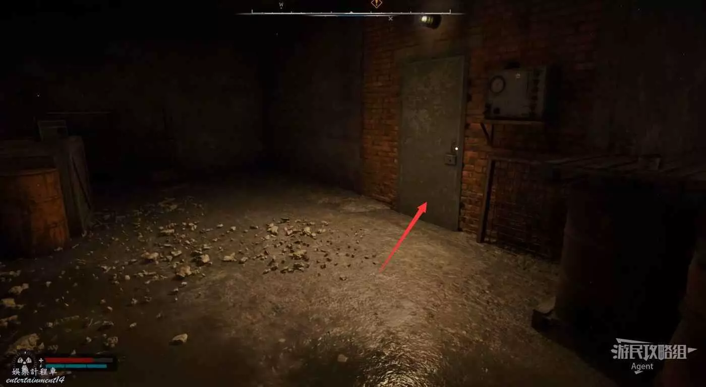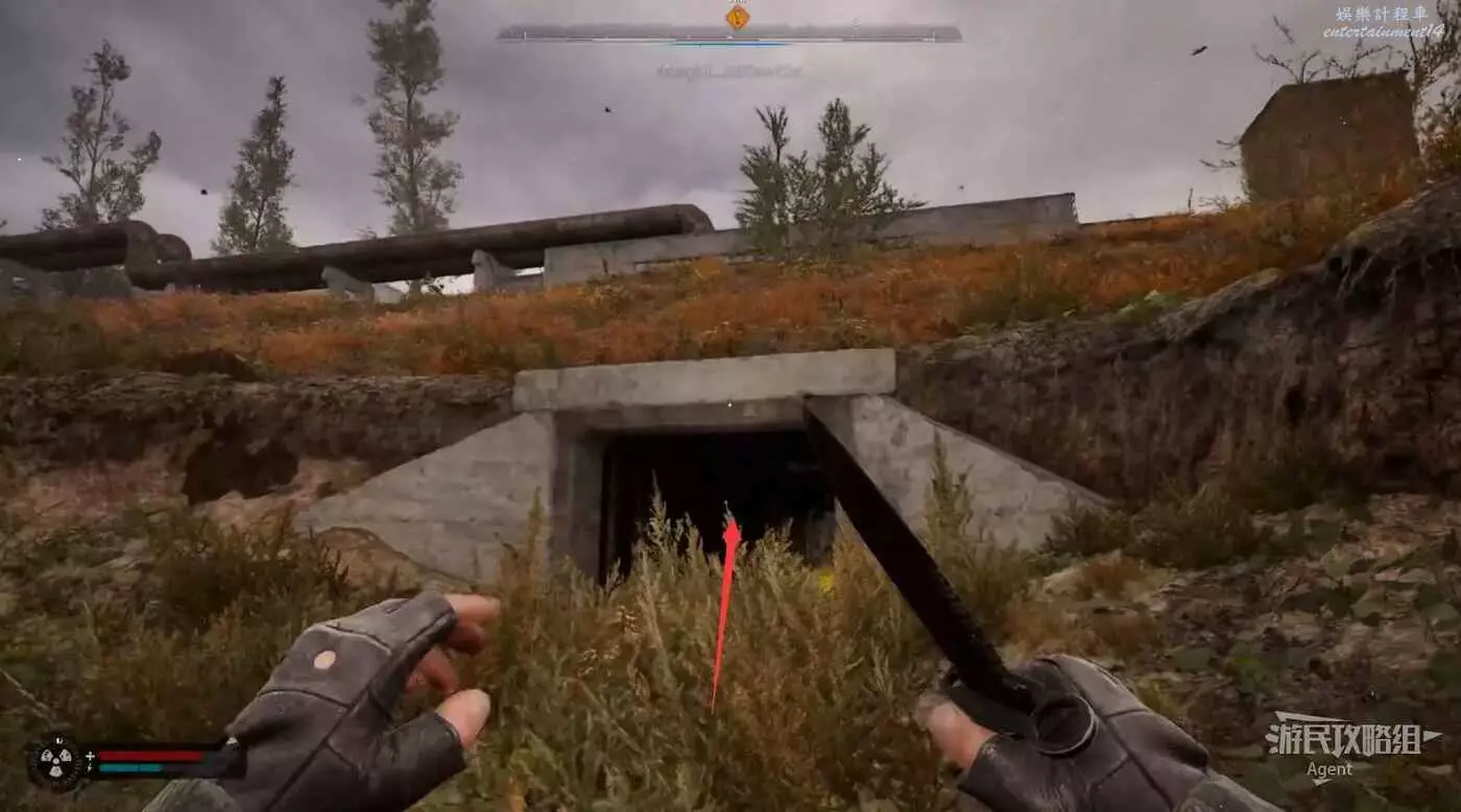 來到抽水站的房子發現門打不開,在附近找到通往地下車間的入口。