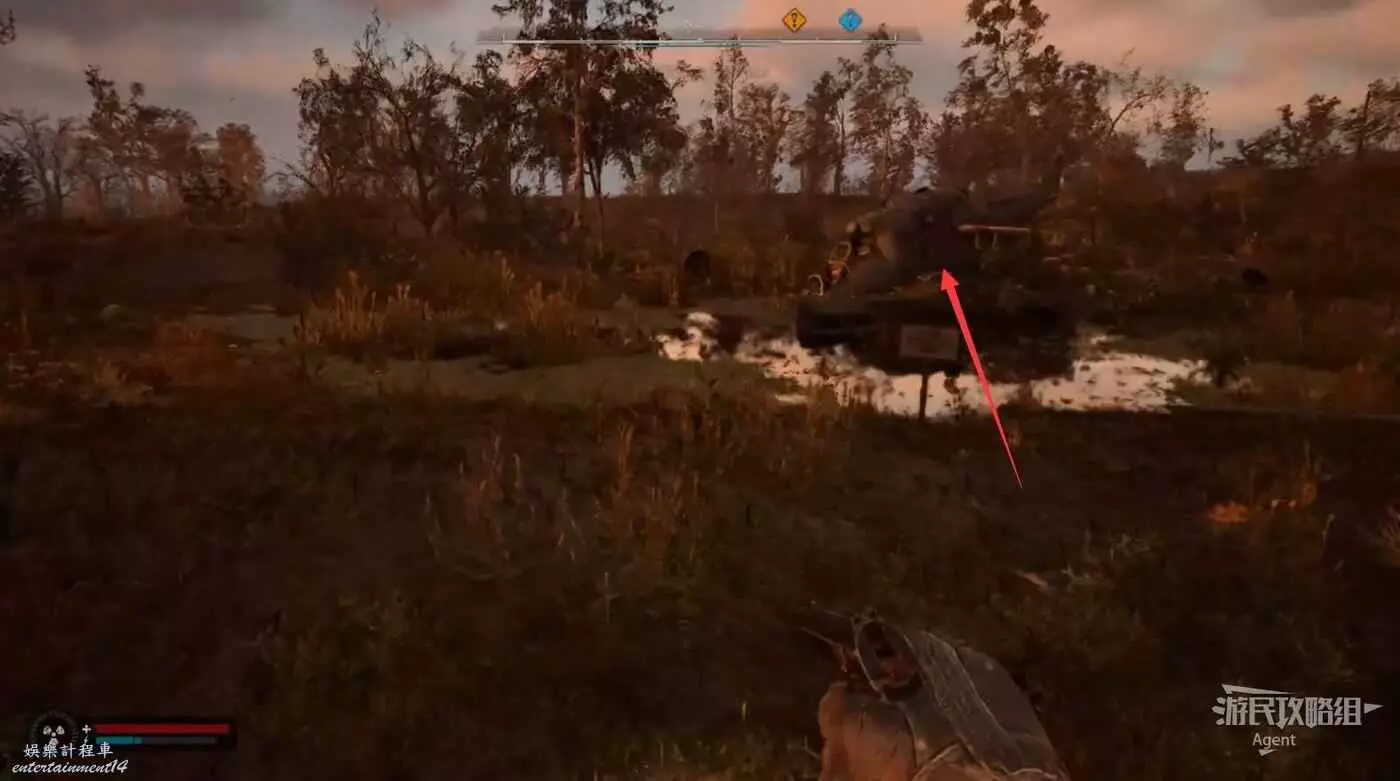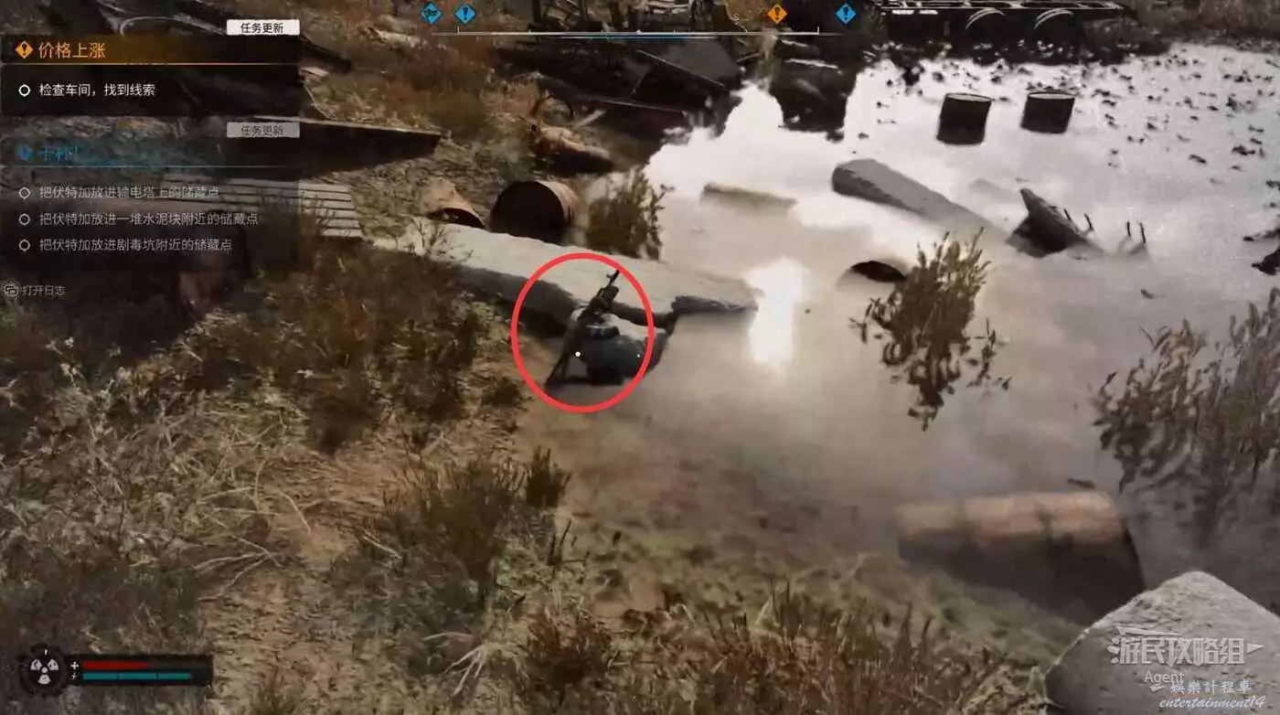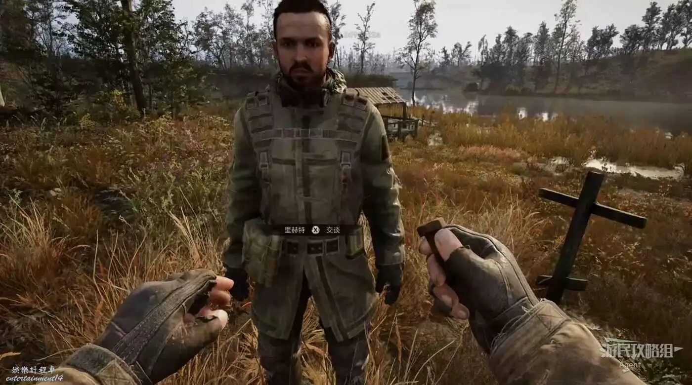 營地外有個叫牛犢子的人,到水邊幫他把槍撿回來就行。在地圖上還會經常遇到一些類似的趣味小任務。