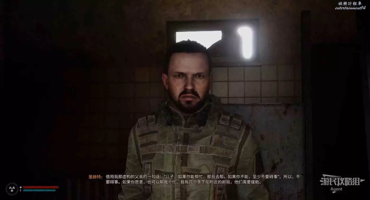 到小屋裡再和他對話,他會叫你去附近的郵局幫助他的手下,他還會送給你一些補給。