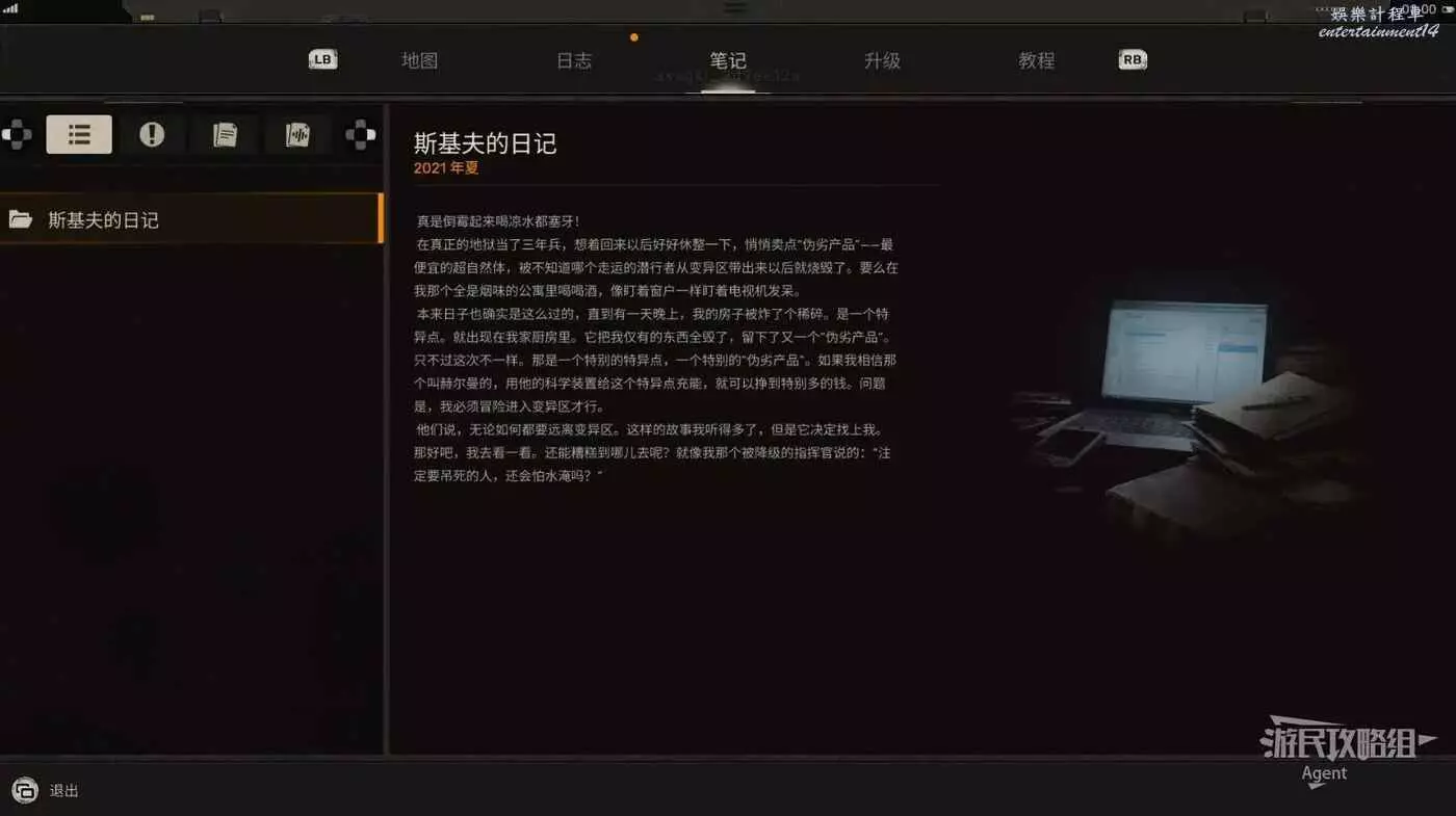 遊戲一開始打開筆記,可以看到主角斯基夫的日記,了解主角的故事背景。