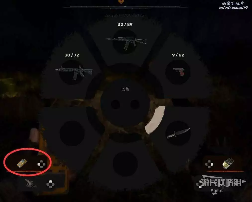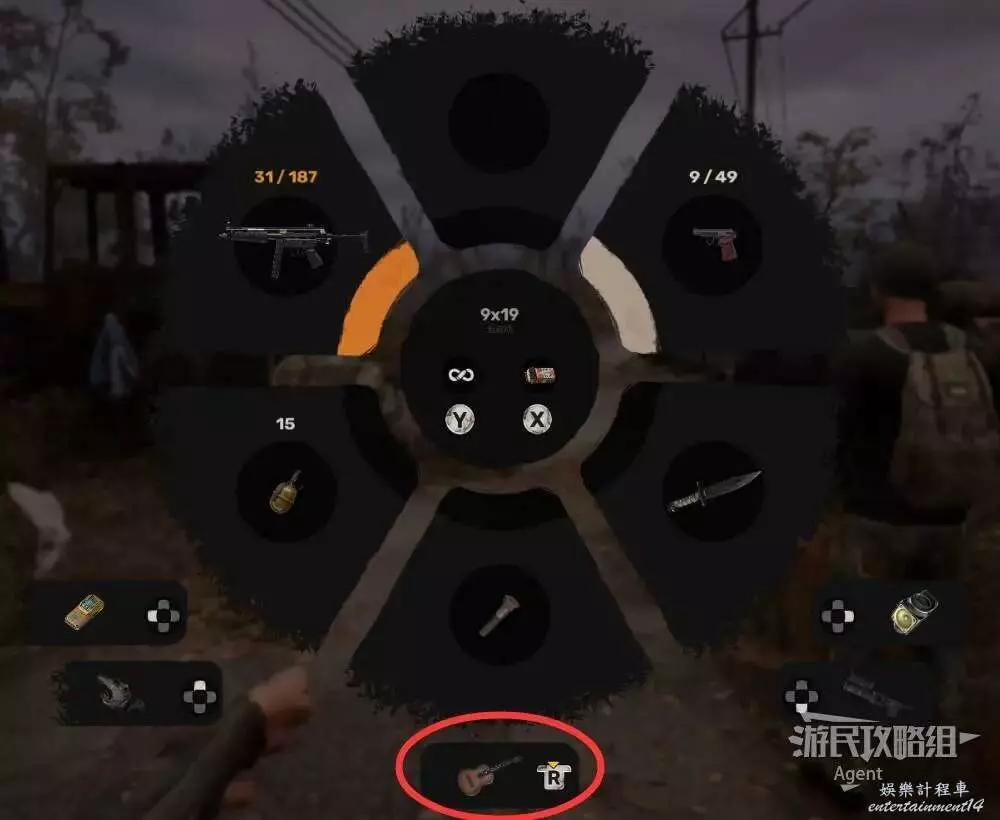 打開環形功能表,可以切換武器、武器所使用的彈藥、武器的射擊模式。