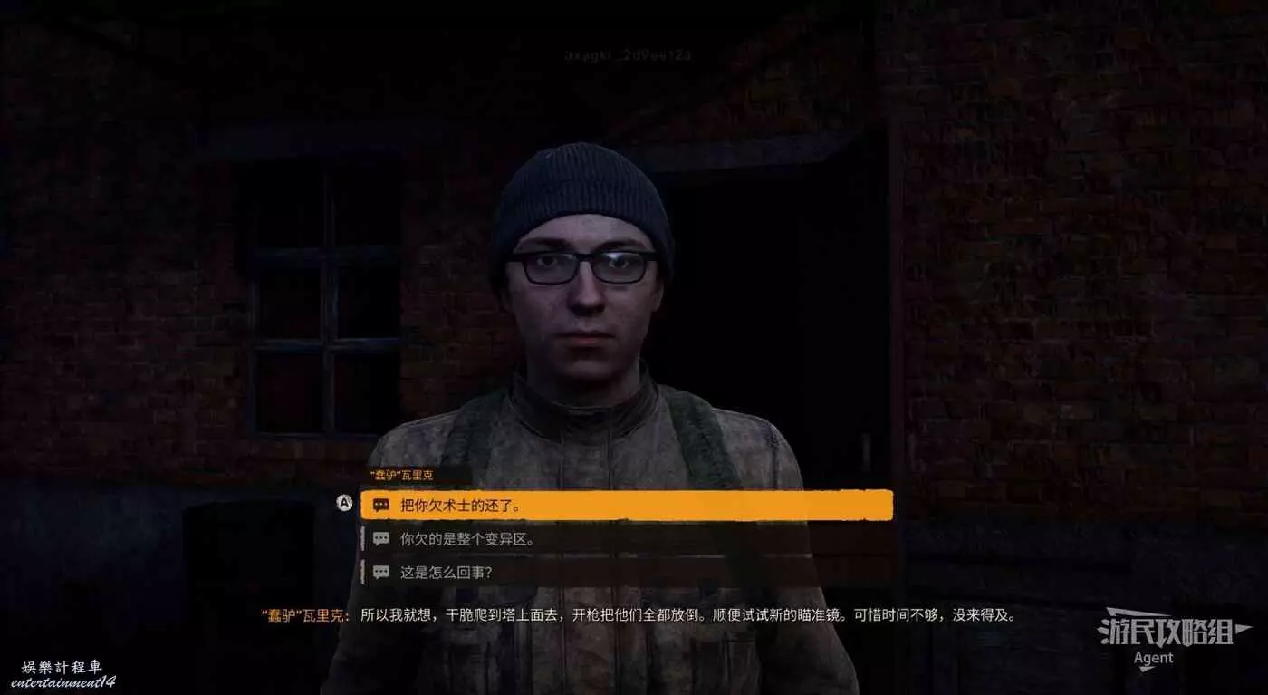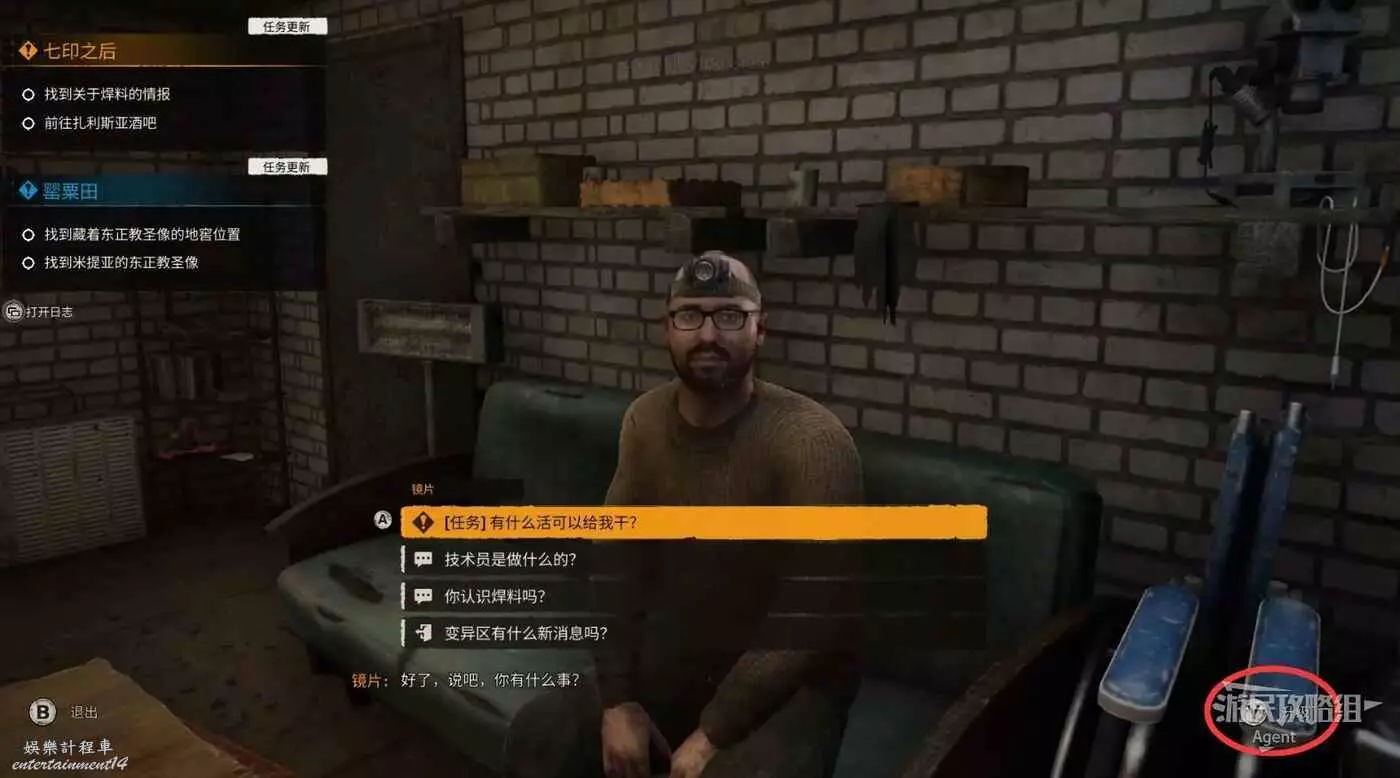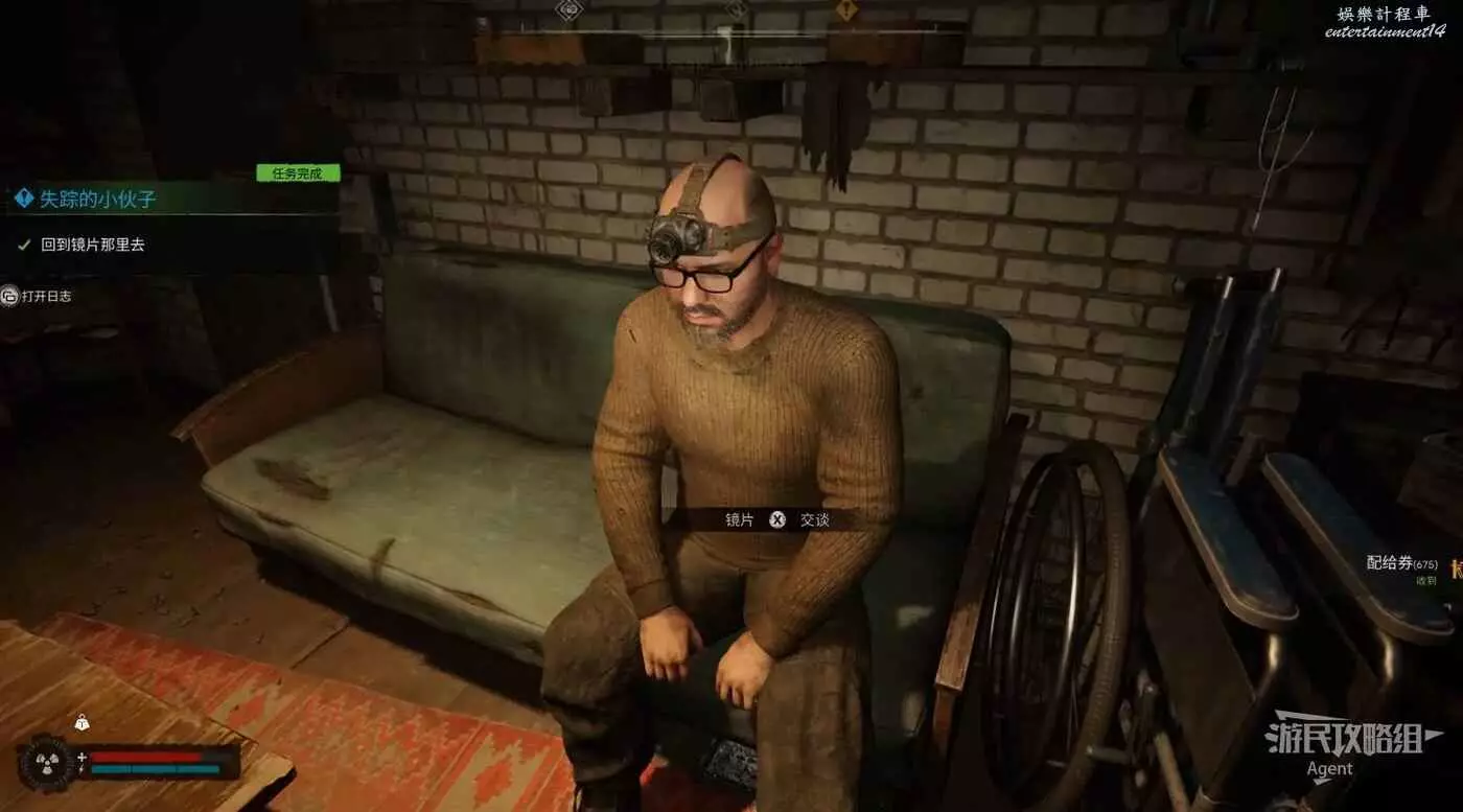 在營地和技術員“鏡片”對話,接到任務“失蹤的小夥子”。