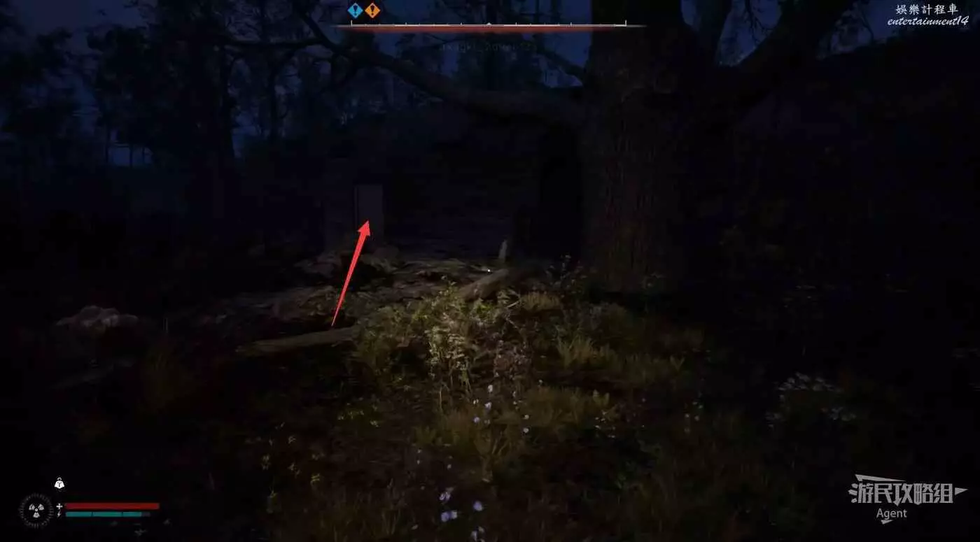 來到目標房子,跳進地板上的洞,小心洞裡有個隱形怪。
