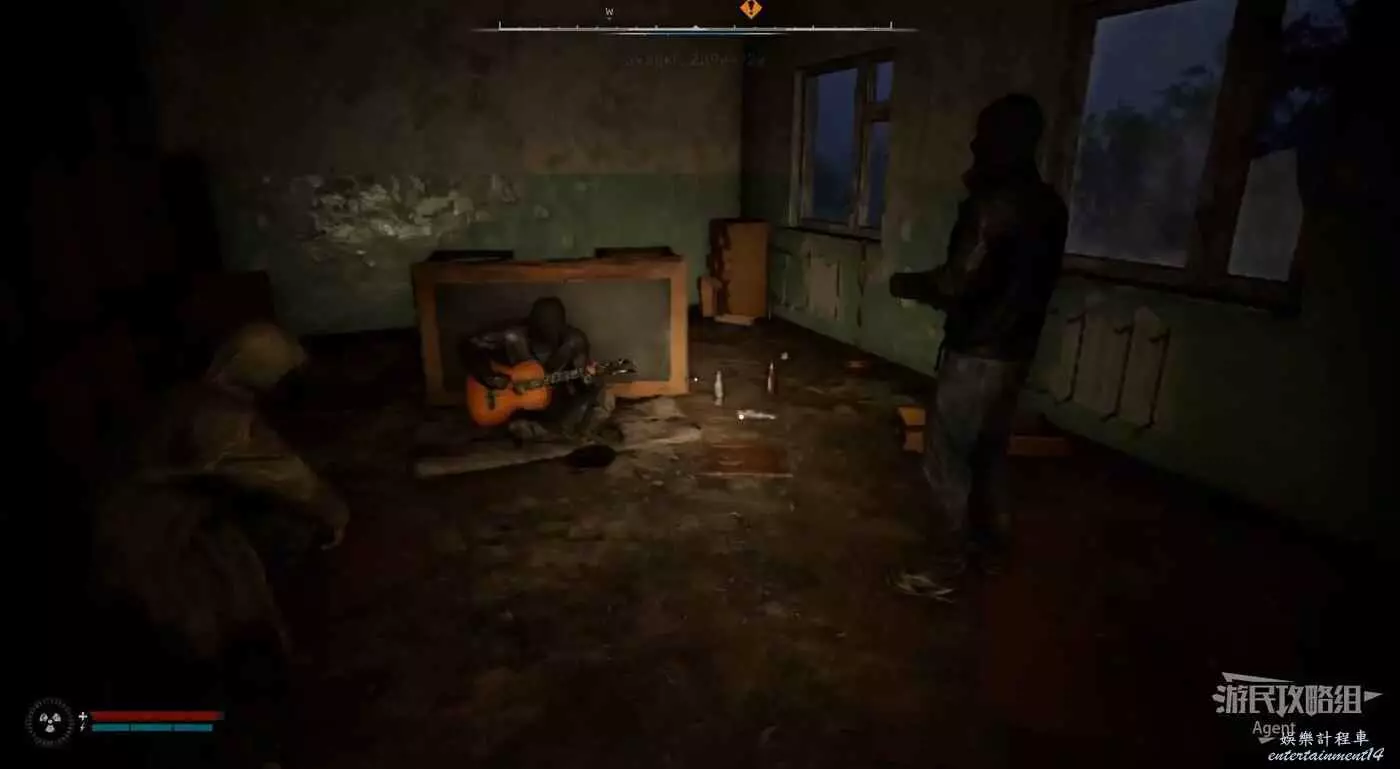 商人“倉鼠”所在的房子裡面,玩家的儲藏點箱子和床的旁邊,可以拿到把吉他。