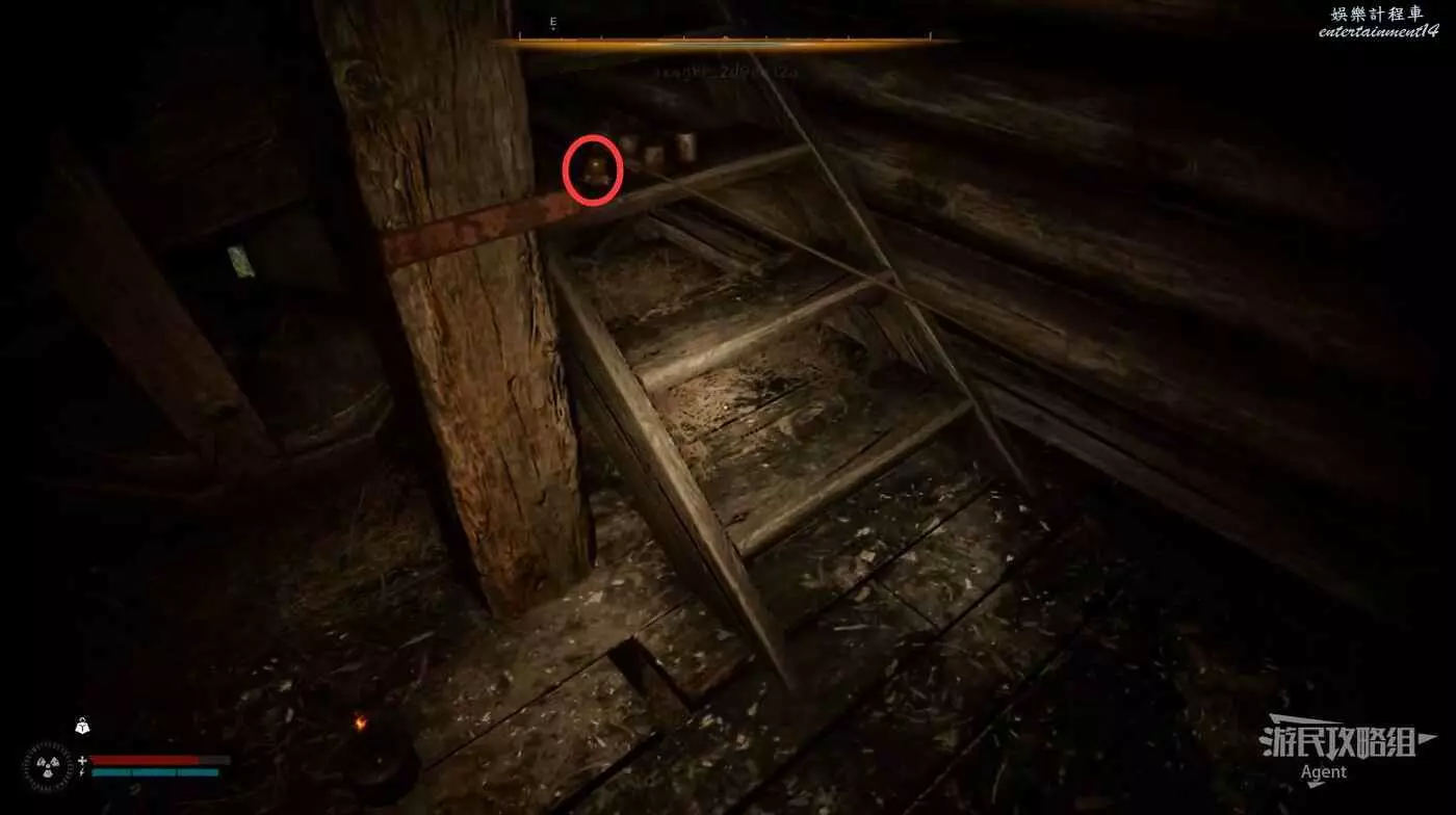 路邊的房子也都搜刮下,然後進入水邊的這個房子看到個梯子。