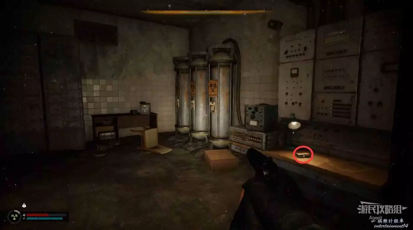 搜刮實驗室,穿著防護服的屍體上拿到探測器。