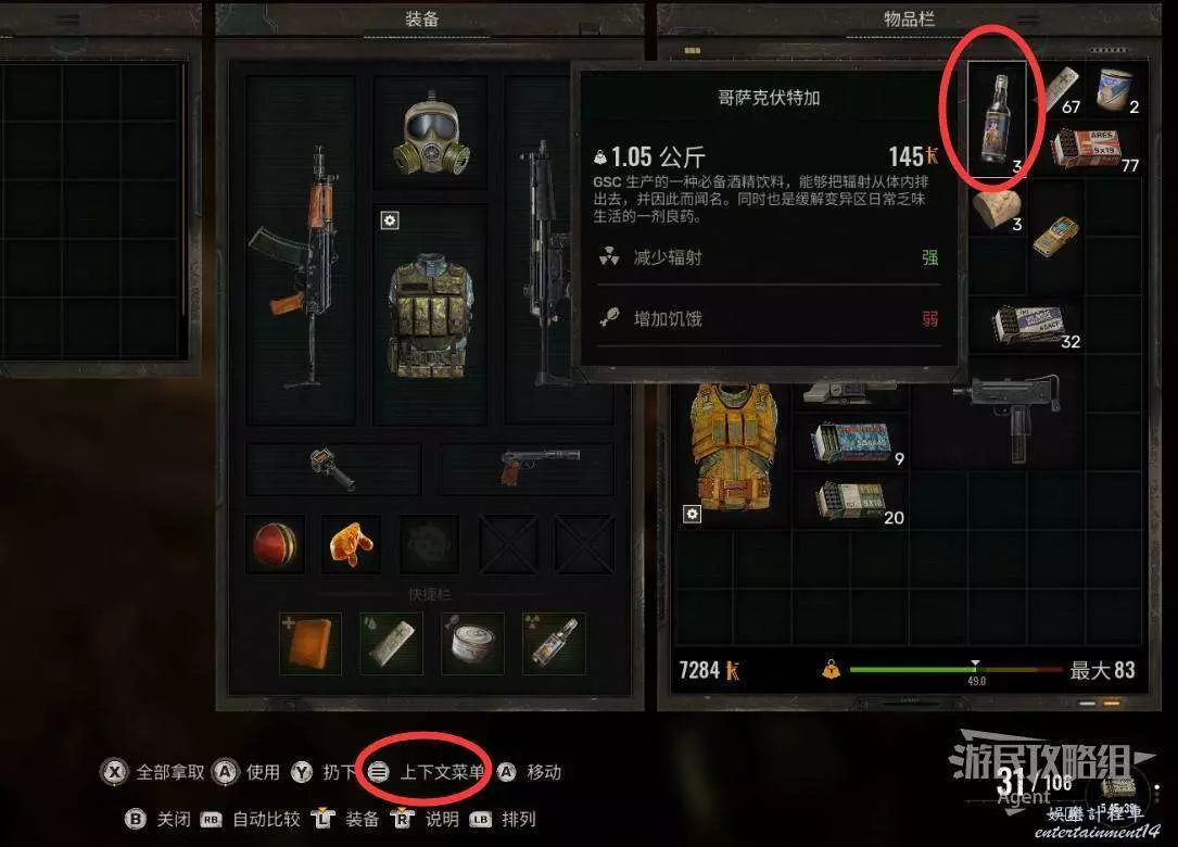 如果要放伏特加,先打開儲藏點的背包,然後使用伏特加的“上下文菜單”,選擇“放下”(注意是放下而不是丟下),就可以放進背包裡了。把物品放進個人倉庫時也是這個操作方法。