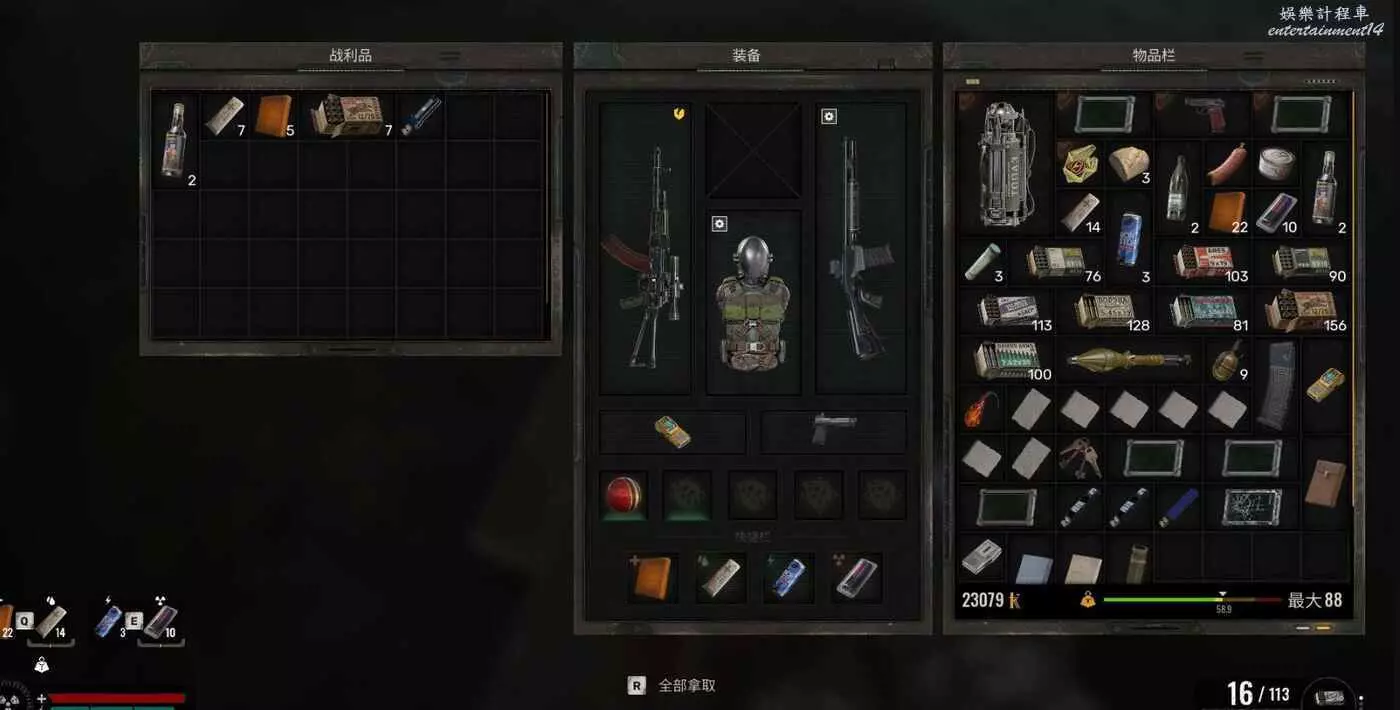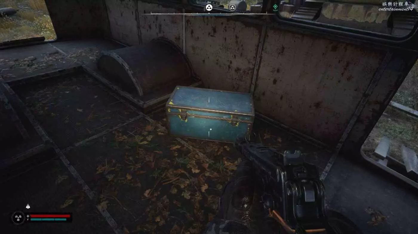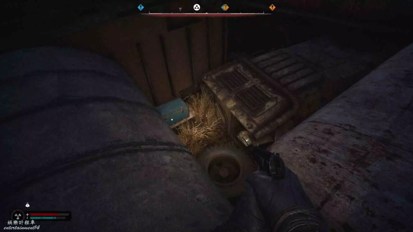 從汽車這邊跳上來後,再下到這個棚上面,來到二樓,戰利品在最裡面。