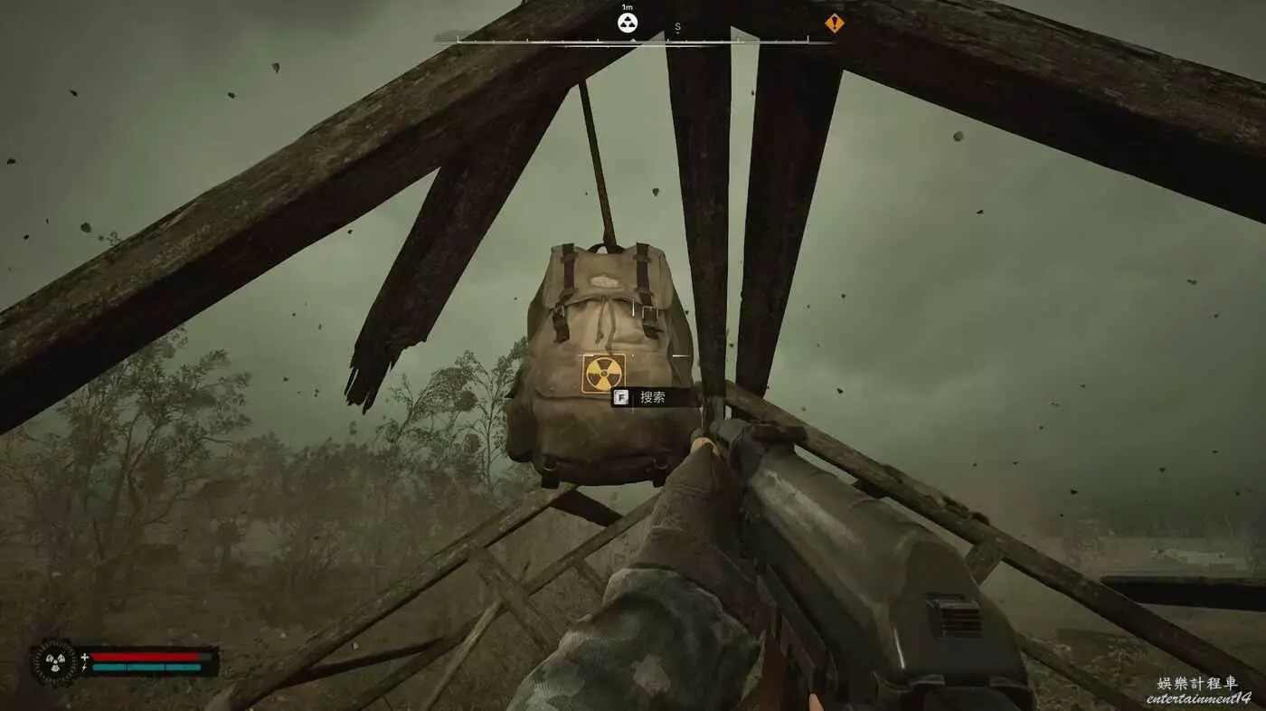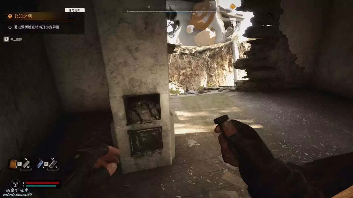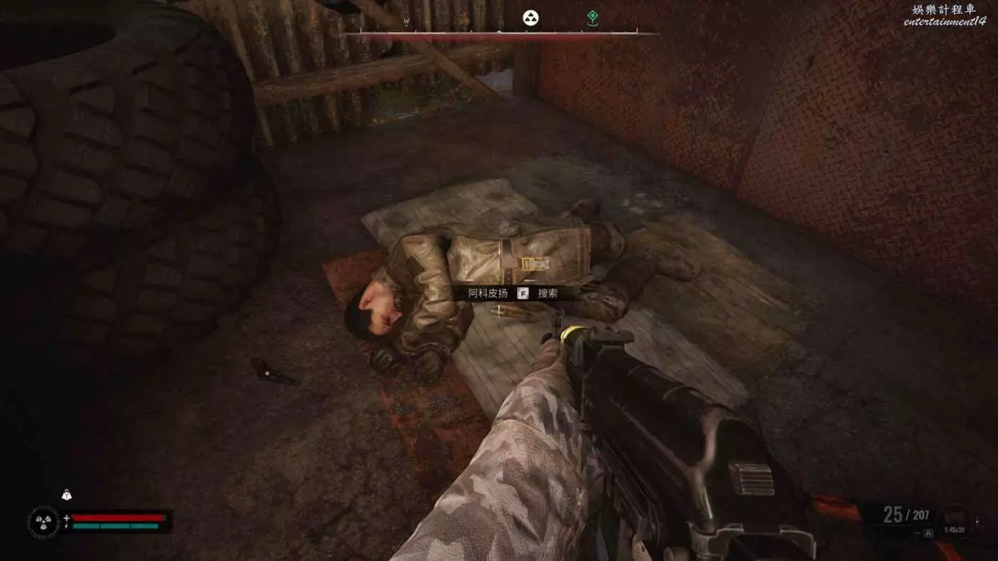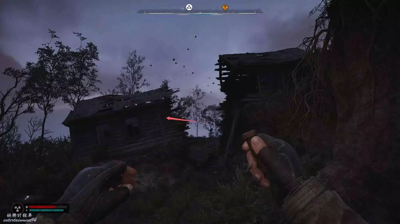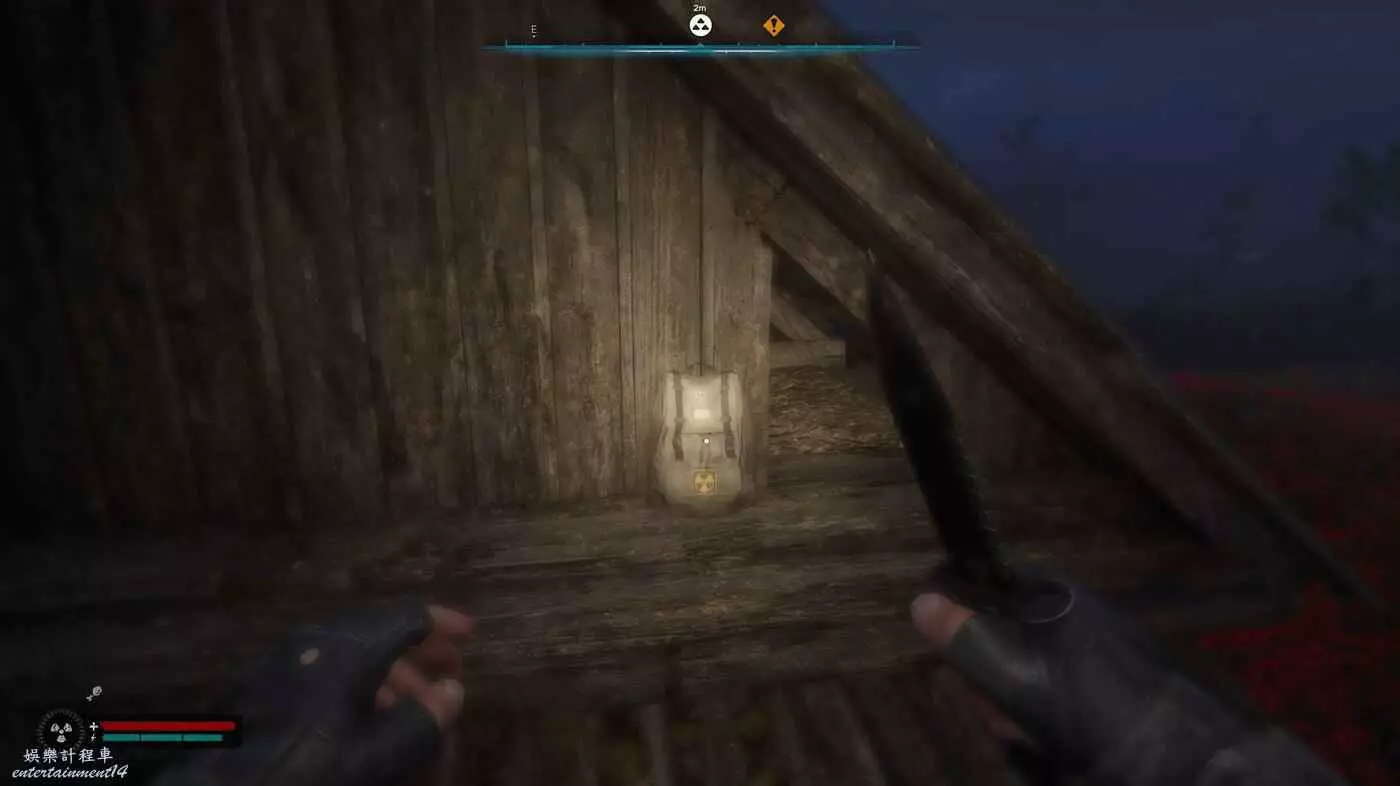 然後跳上挖掘機,沿著挖掘機臂進入木屋,與對講機和屍體互動,就可以開啟任務。根據任務提示一步步往前推。