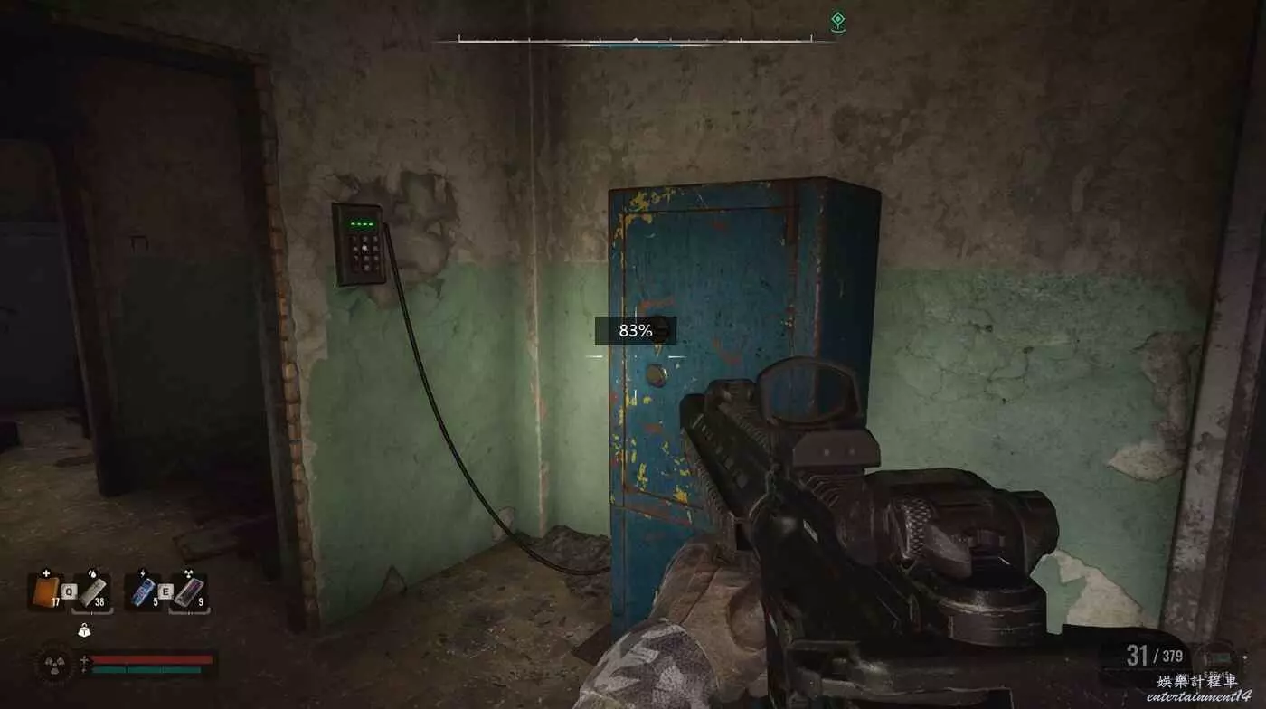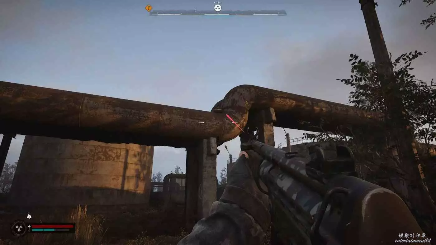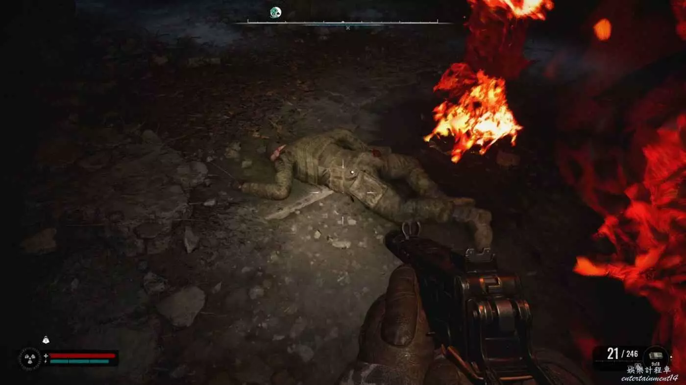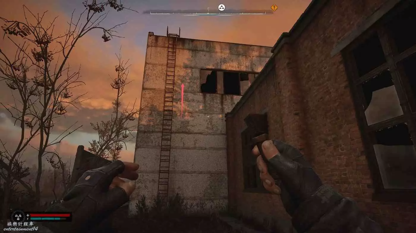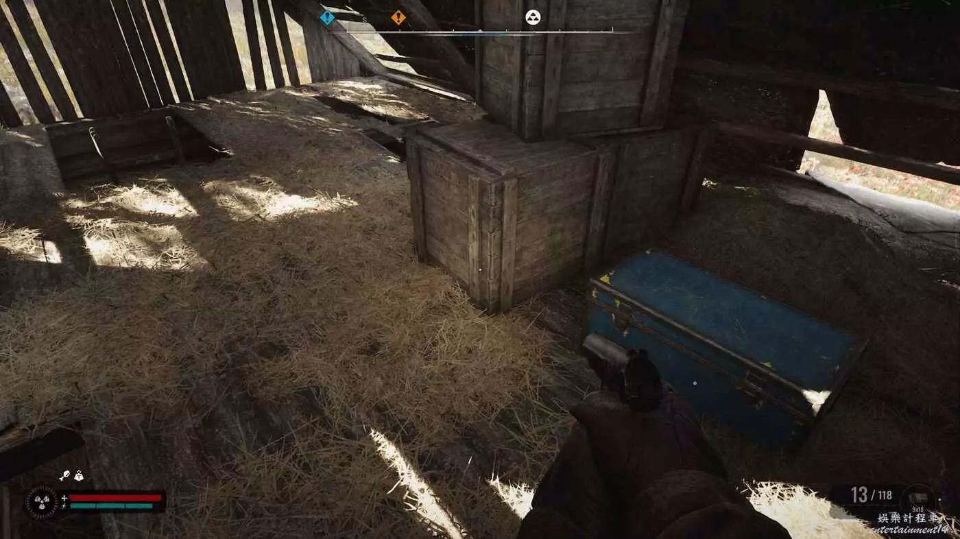 然後跳上挖掘機,沿著挖掘機臂進入木屋,與對講機和屍體互動,就可以開啟任務。根據任務提示一步步往前推。